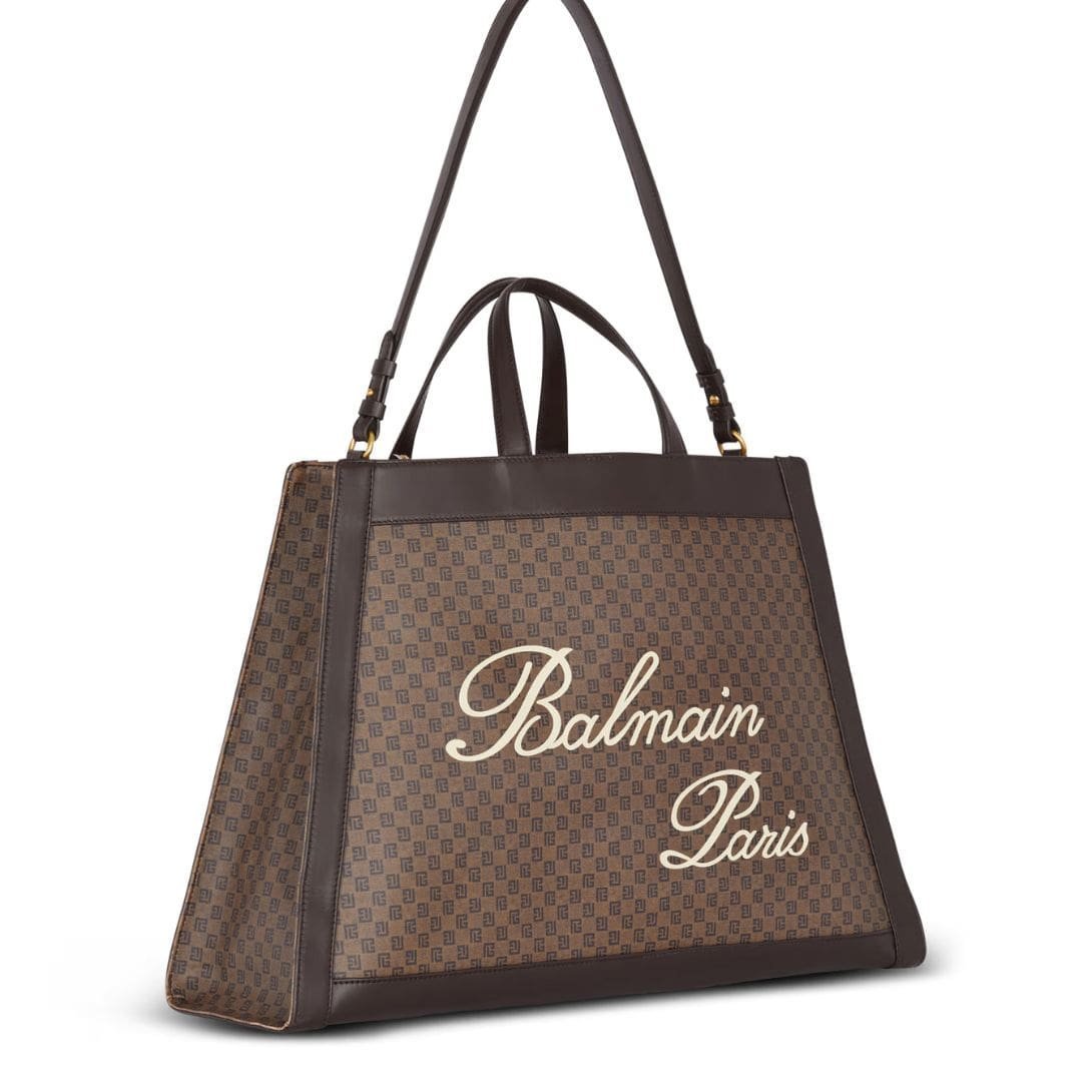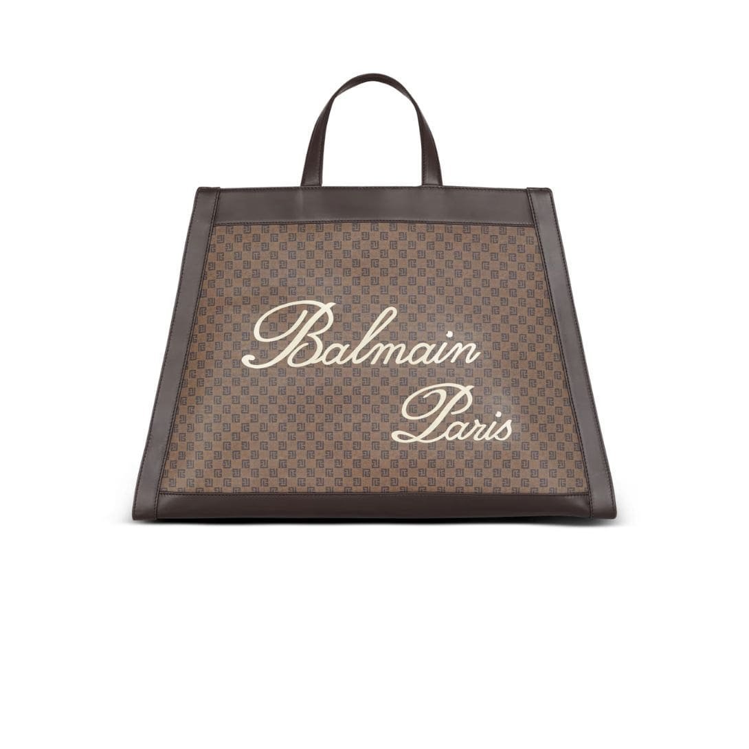 The front is adorned with the contrasting Balmain Signature logo, adding a touch of distinction to the design. Secured with a press-stud fastening on a leather tab inside, this bag ensures both security and style.
