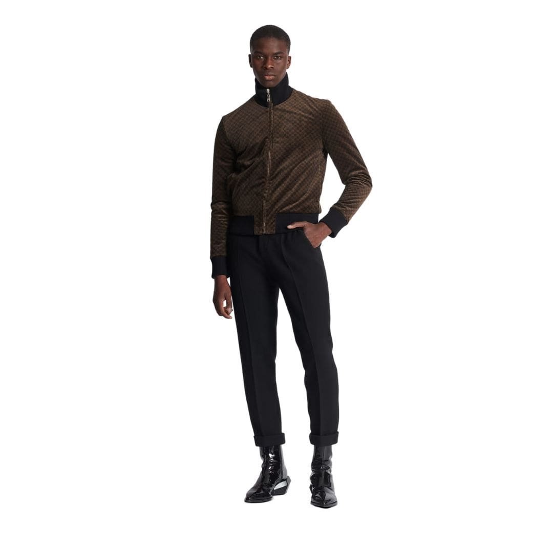 Whether layered over a simple tee and jeans for a casual daytime look or paired with tailored trousers and heels for a night out, the BALMAIN REVERSIBLE MINI MONOGRAMMED BOMBER exudes confidence and sophistication, making a bold statement wherever it goes. With its fusion of luxury and streetwear aesthetics, this iconic piece encapsulates the essence of modern glamour and is sure to become a coveted addition to any fashion-forward wardrobe.