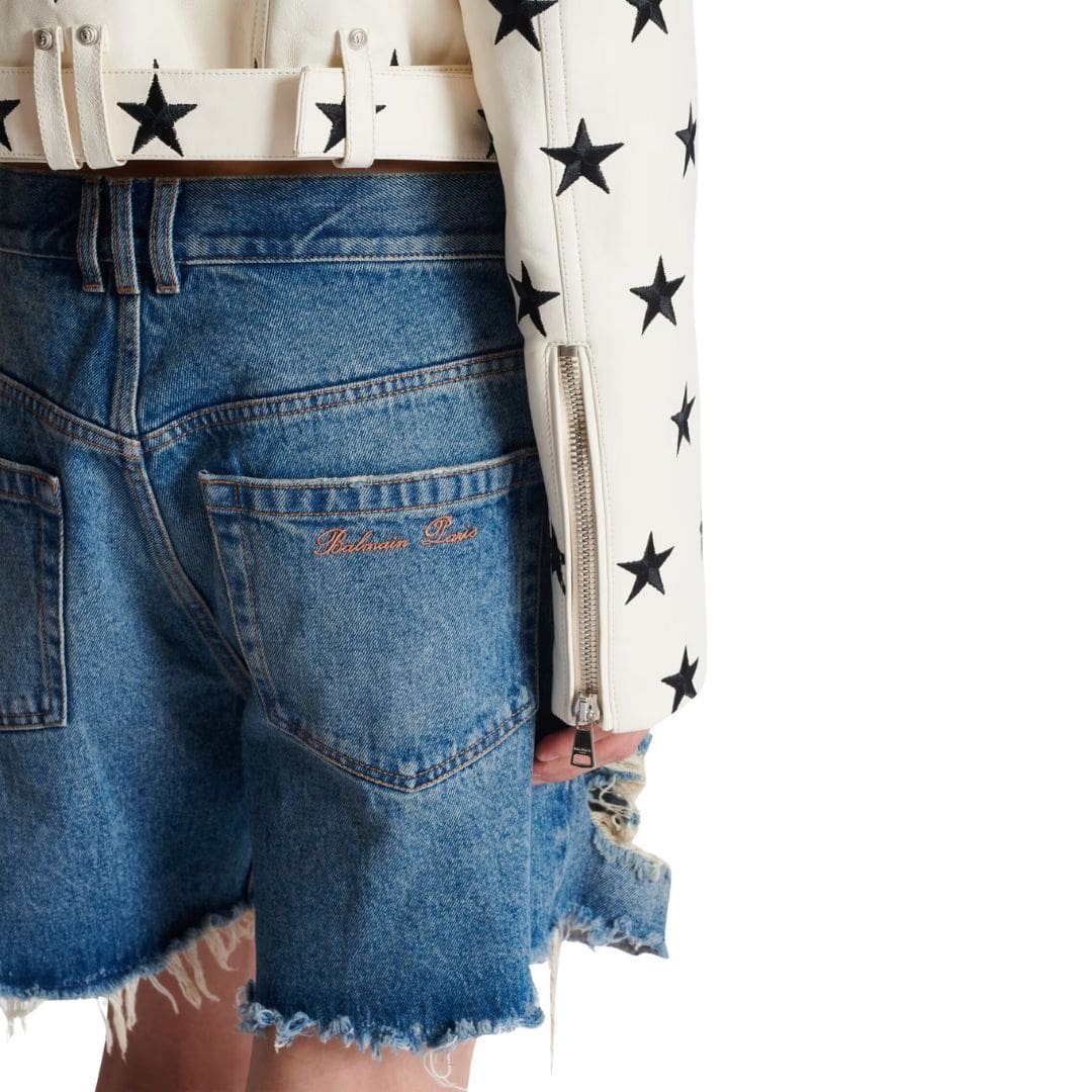 BALMAIN STARS BIKER JACKET IN EMBROIDERED LEATHER
