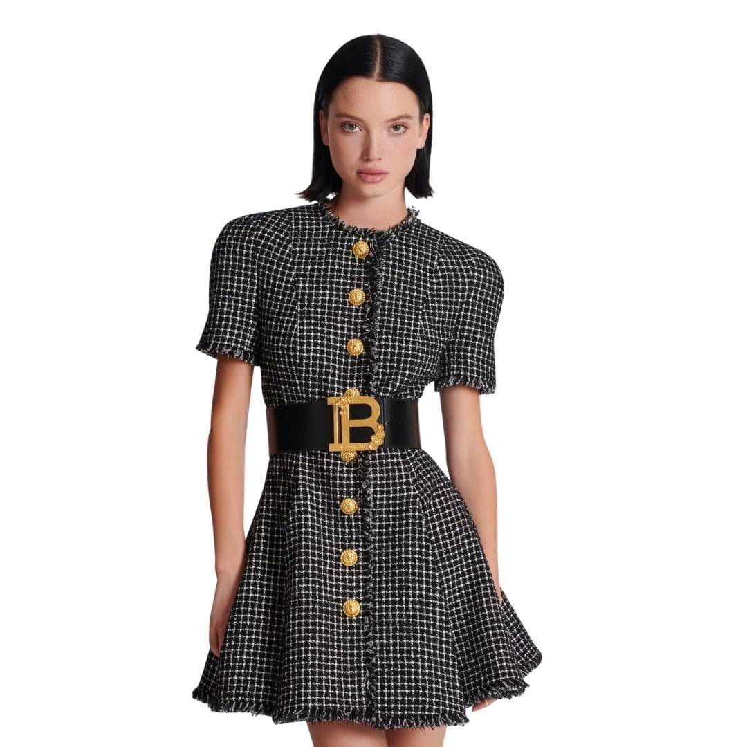 The focal point of this iconic accessory is undoubtedly the gleaming gold-tone “B” buckle, which serves as a striking emblem of the Balmain brand. Meticulously designed with intricate detailing, the emblematic letter pays homage to the label’s rich heritage while exuding a contemporary allure. The juxtaposition of the polished hardware against the rich leather creates a visually arresting contrast, adding a touch of glamour to any ensemble.