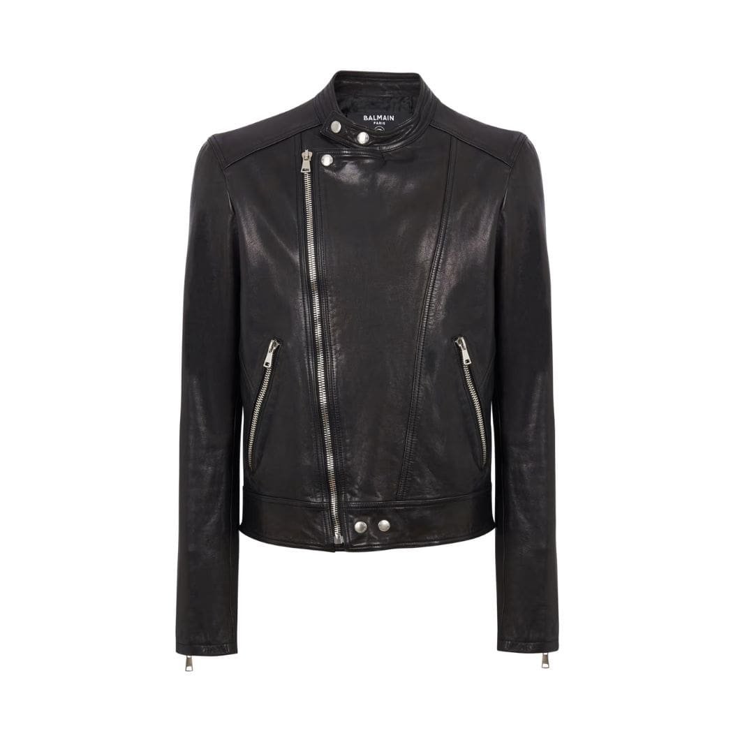 BALMAIN ZIPPED LEATHER BIKER JACKET