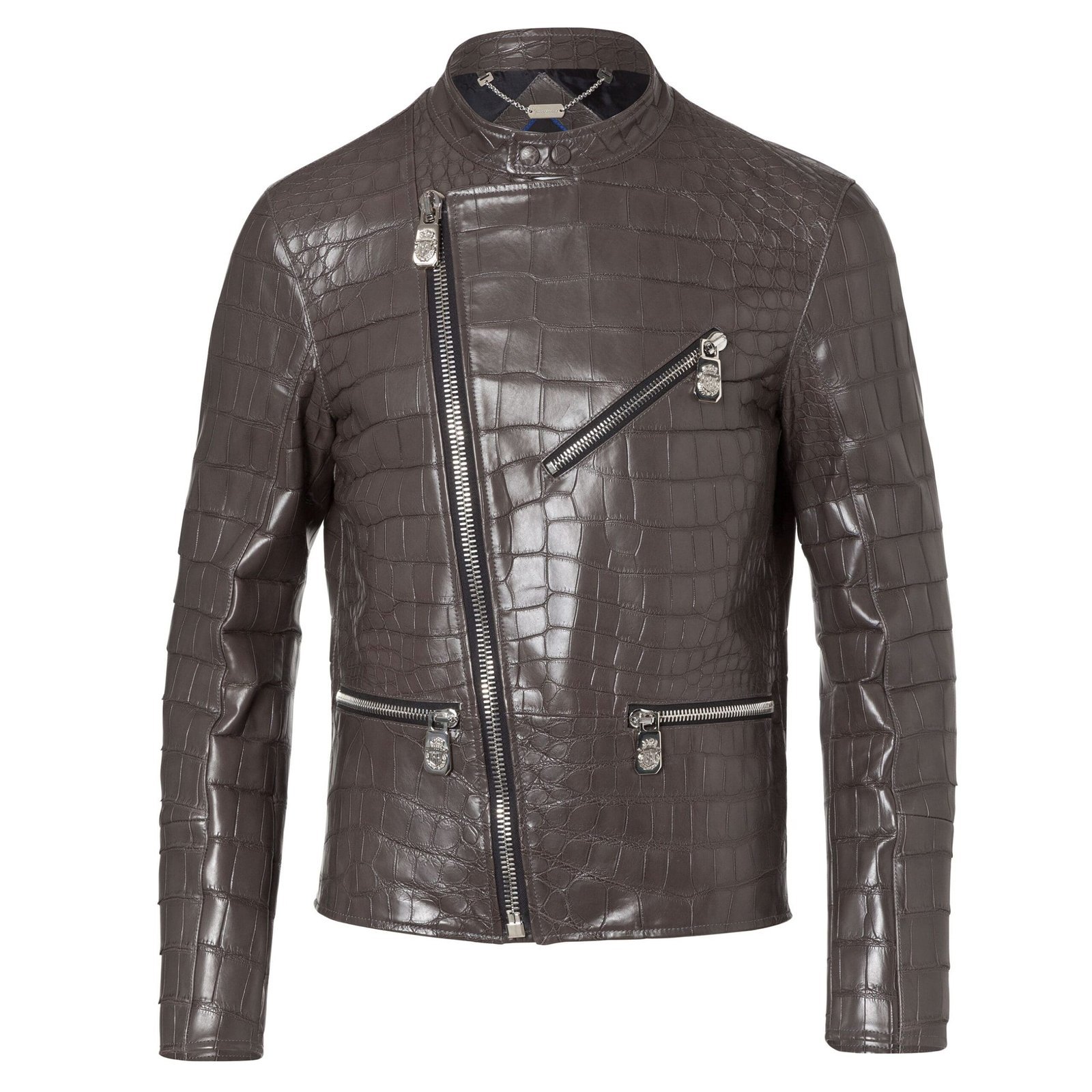 Introducing the Studded billionaire Leather biker, a symbol of unparalleled luxury and edgy sophistication. Crafted from exquisite crocodile leather, this jacket exudes opulence at every glance. Featuring zipped closures, sleeves, and pockets with sleek sliders and a raised coat of arms for added flair, it stands as a testament to meticulous craftsmanship. Fully lined for comfort, with a discreet inner pocket for convenience, this jacket seamlessly combines style with functionality, making a bold statement in any setting.