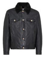 The iconic metal lion head adorns the hanging loop at the yoke, symbolizing sophistication and prestige. Metal buttons embellish the opening, cuffs, and patch pockets, adding a touch of refinement. Lined with plush sheepskin, this jacket combines opulence with practicality, ensuring warmth and comfort with every wear.