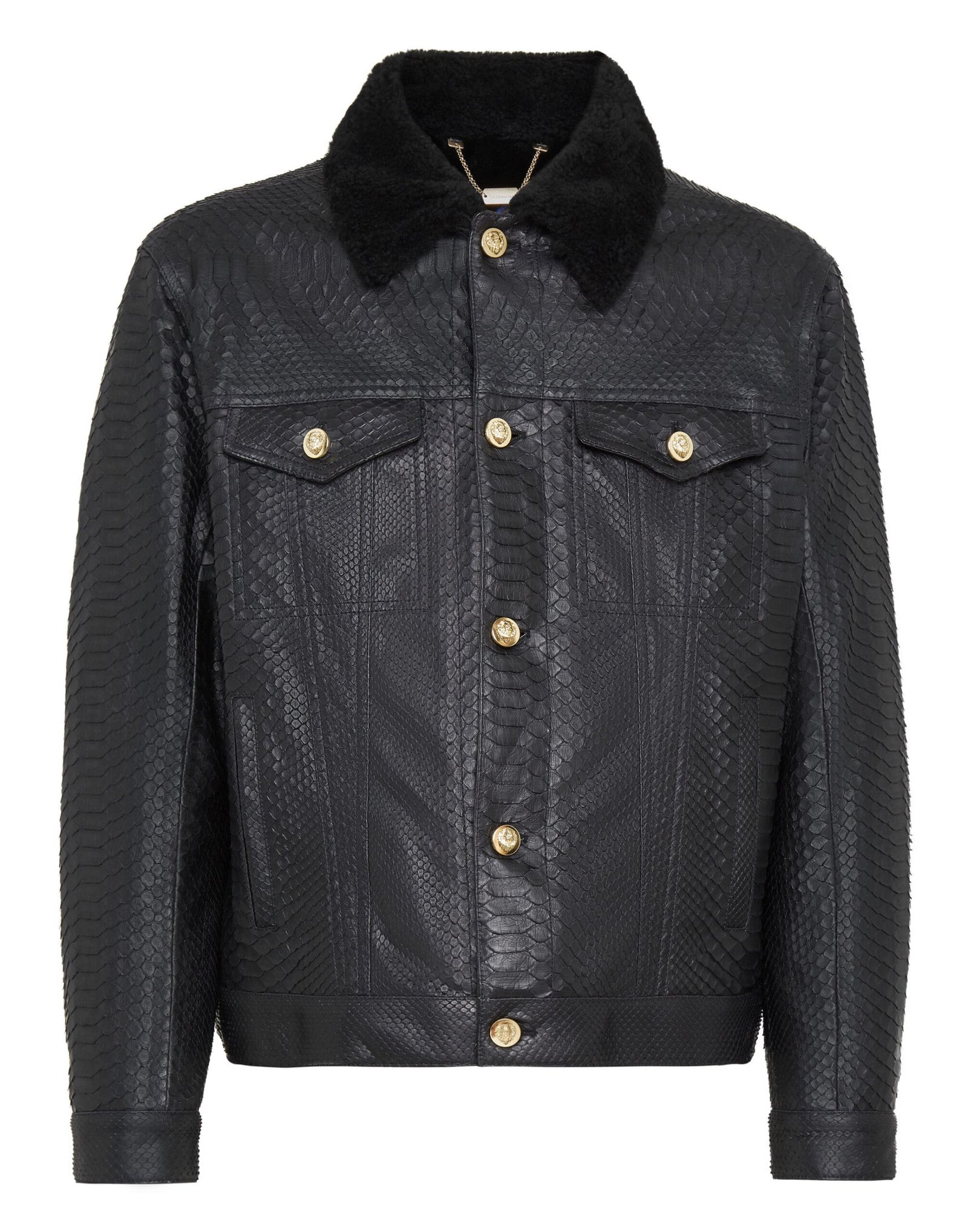 Presenting the Billionaire Leather Jacket with Python Luxury, a luxurious rendition of a classic staple. Elevating traditional craftsmanship, this jacket boasts a sheepskin-lined collar secured with a single press stud for added comfort.