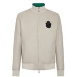 Elegance emanates from meticulous attention to detail, wouldn’t you agree? Allow us to introduce this luxurious soft billionaire leather plonge. Crafted from plongé Nappa, it features an embroidered Crest on velvet, meticulously sewn at the left chest. With a double slider zip fastening and two slit pockets discreetly secured with press studs, it boasts rib knit hems with contrasting colors on the inside for added flair. Its lightly padded satin lining showcases a sophisticated jacquard woven pattern.