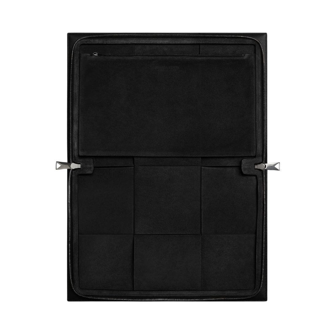 Crafted from the finest materials, the Arco Document Case exudes a sense of refinement at every glance and touch. Its exterior showcases Bottega Veneta’s iconic Intrecciato weave, a meticulous hand-woven pattern that epitomizes the brand’s artisanal expertise. This intricate technique not only enhances the case’s visual appeal but also ensures exceptional durability, promising to stand the test of time with grace and poise.
