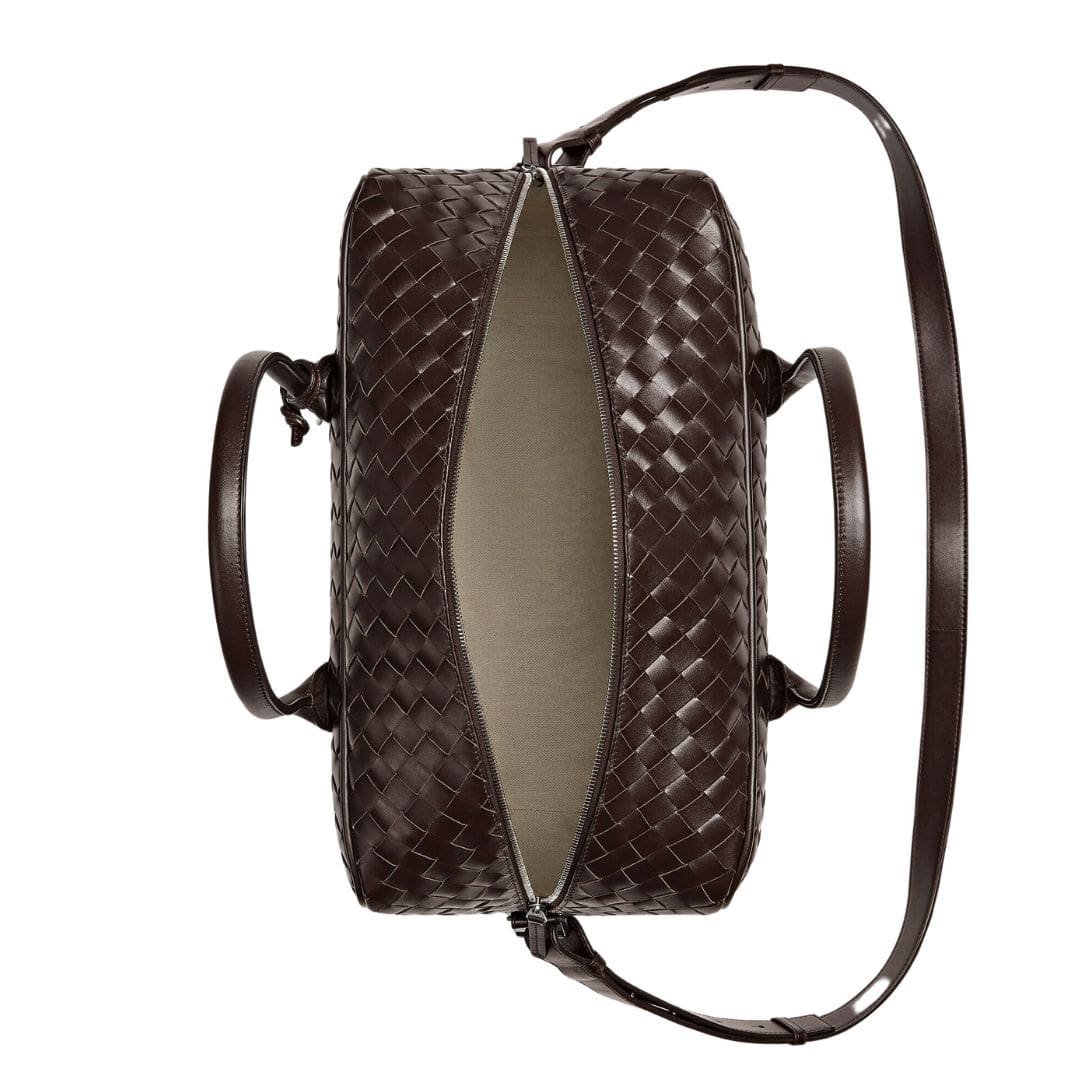 At first glance, the Weekender exudes an aura of refinement with its sleek silhouette and impeccable craftsmanship. Made from the finest Italian leather, each stitch and seam is expertly crafted, ensuring durability and longevity. The supple leather has a subtle sheen that adds to its allure, while the iconic intrecciato weave detail subtly showcases the brand’s heritage and artisanal expertise.