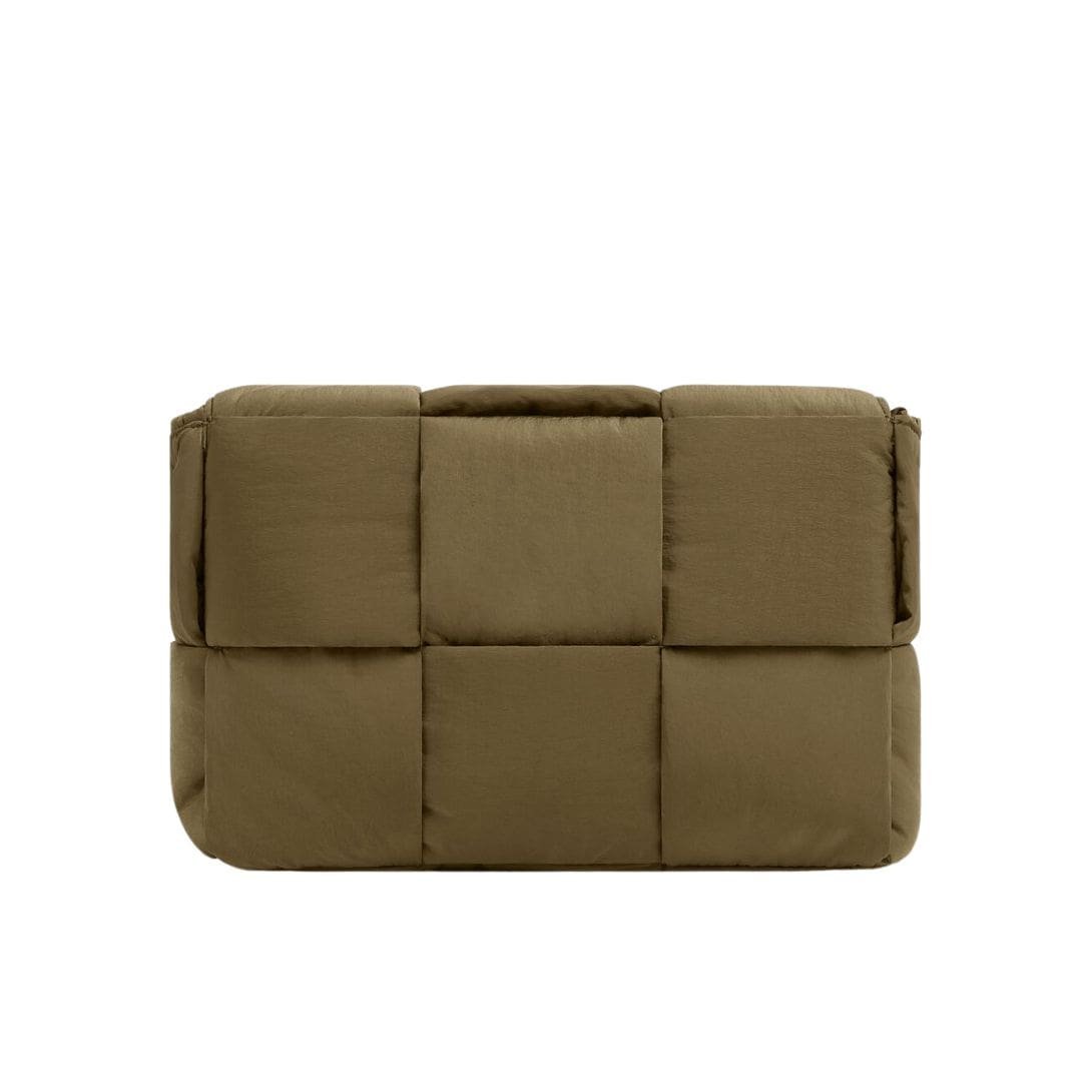 The attention to detail is evident in every aspect of the design, from the meticulously stitched seams to the sleek metal hardware adorned with the iconic Bottega Veneta logo. Each element is carefully considered to create a harmonious balance of form and function.