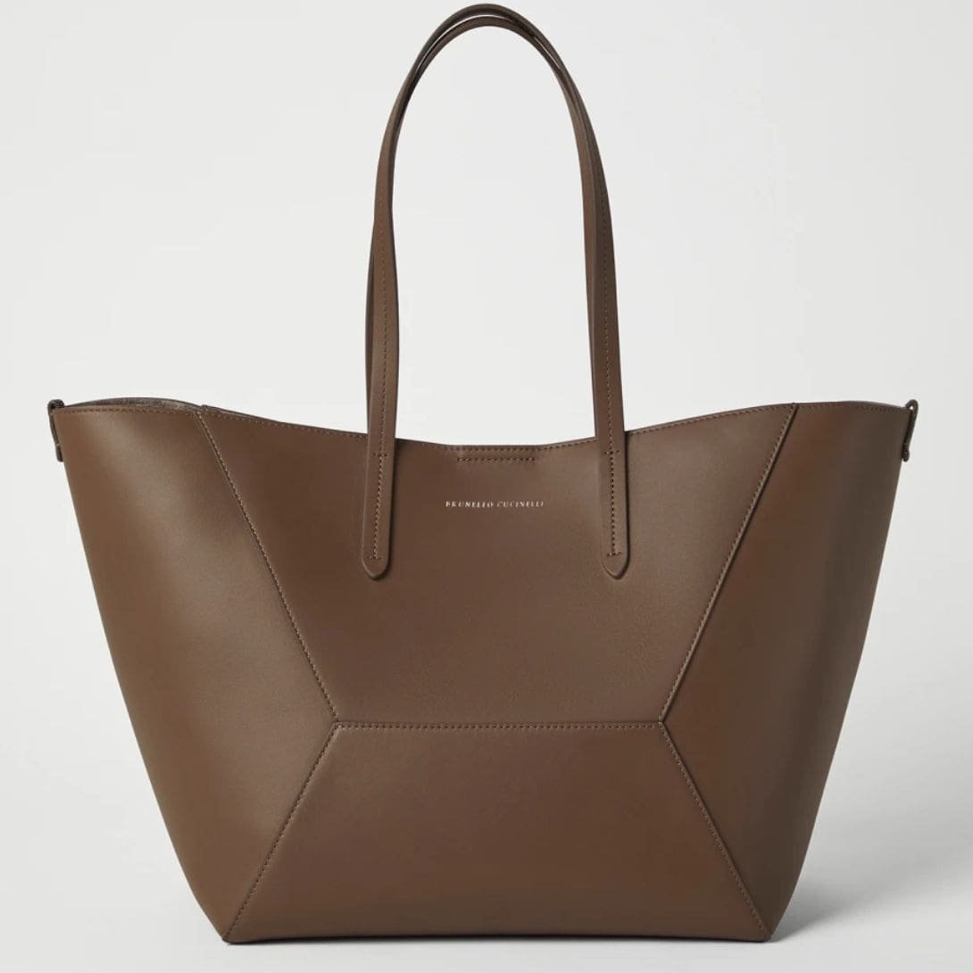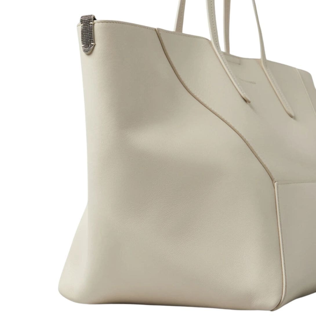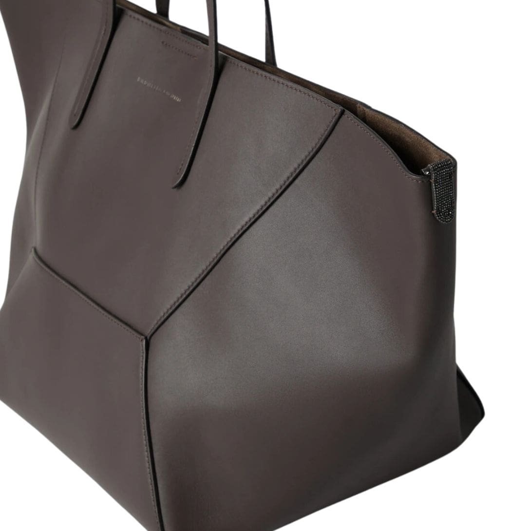 BRUNELLO CUCINELLI CALFSKIN SHOPPER BAG WITH MONILI