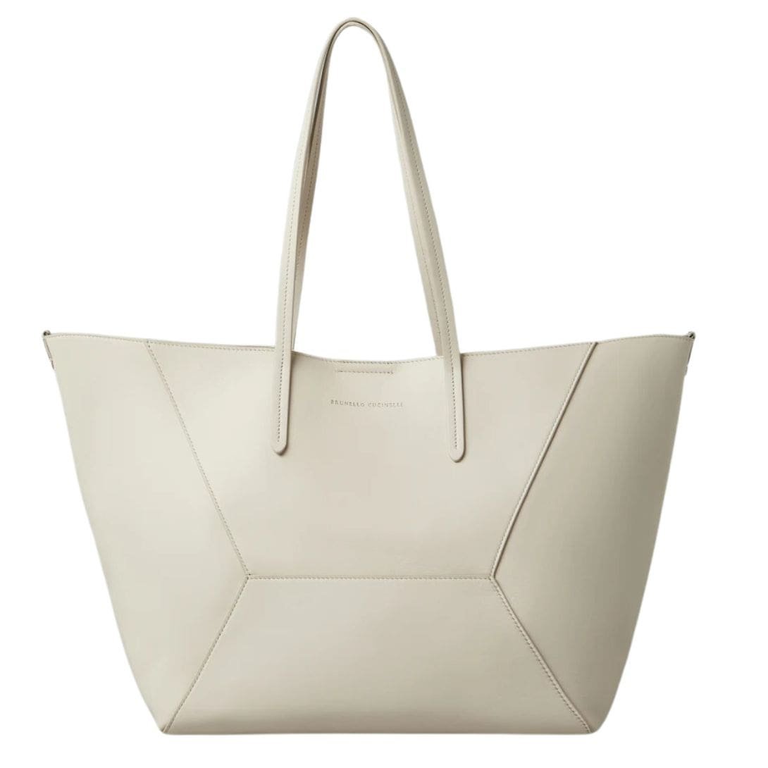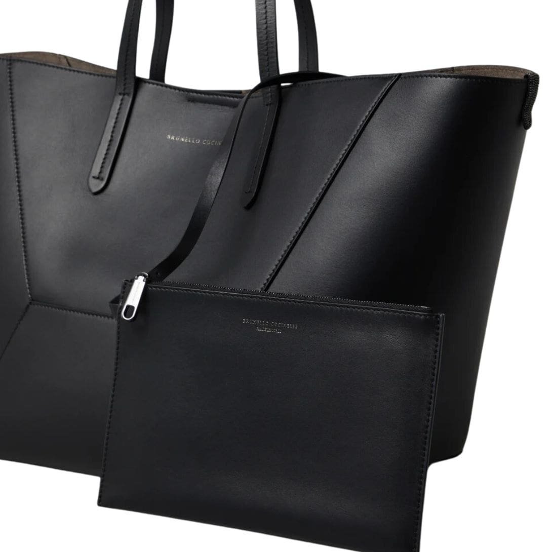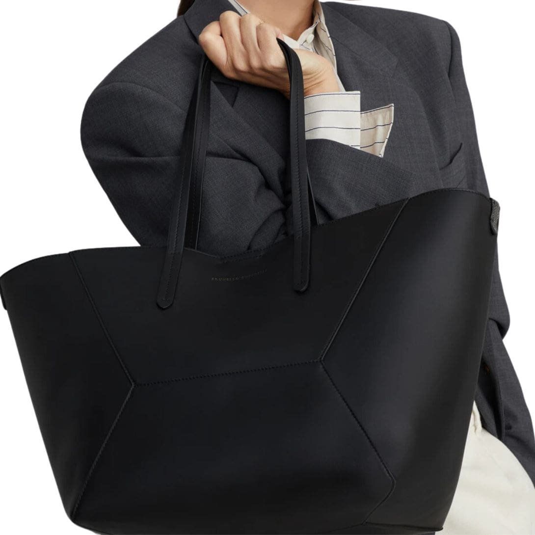 BRUNELLO CUCINELLI CALFSKIN SHOPPER BAG WITH MONILI