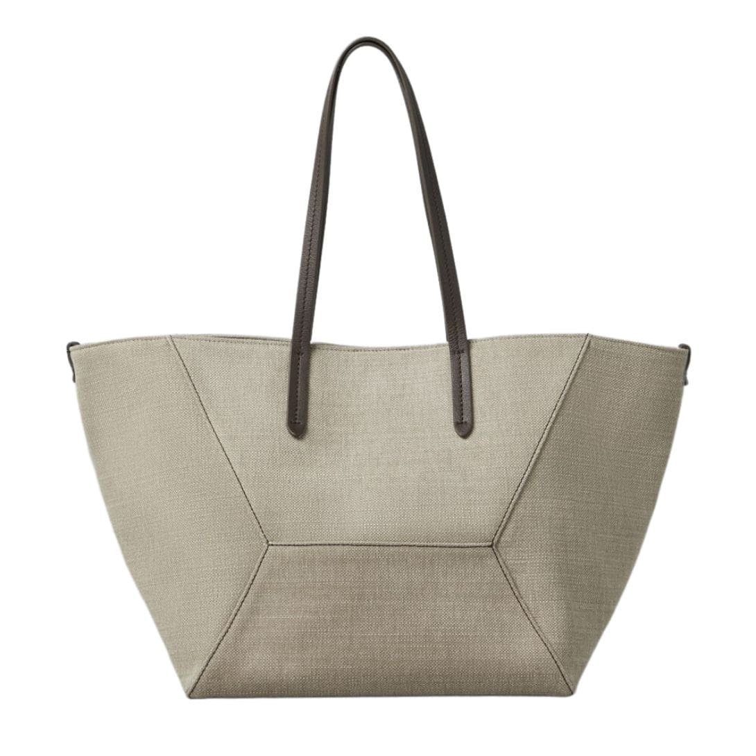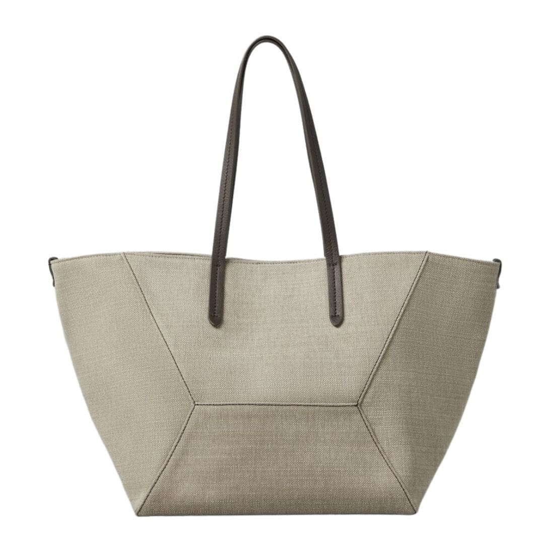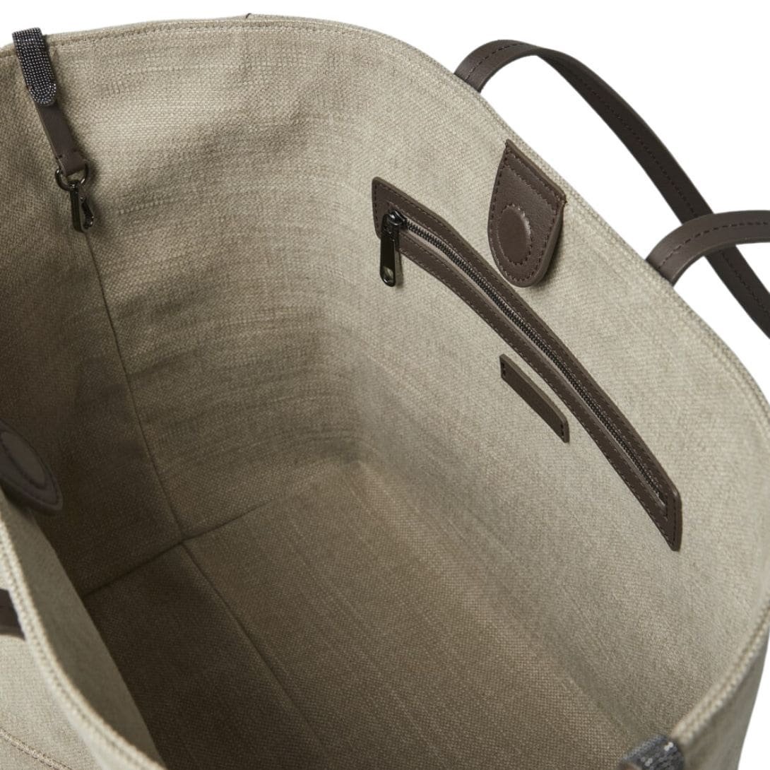 BRUNELLO CUCINELLI COTTON AND LINEN CANVAS SHOPPER BAG WITH MONILI