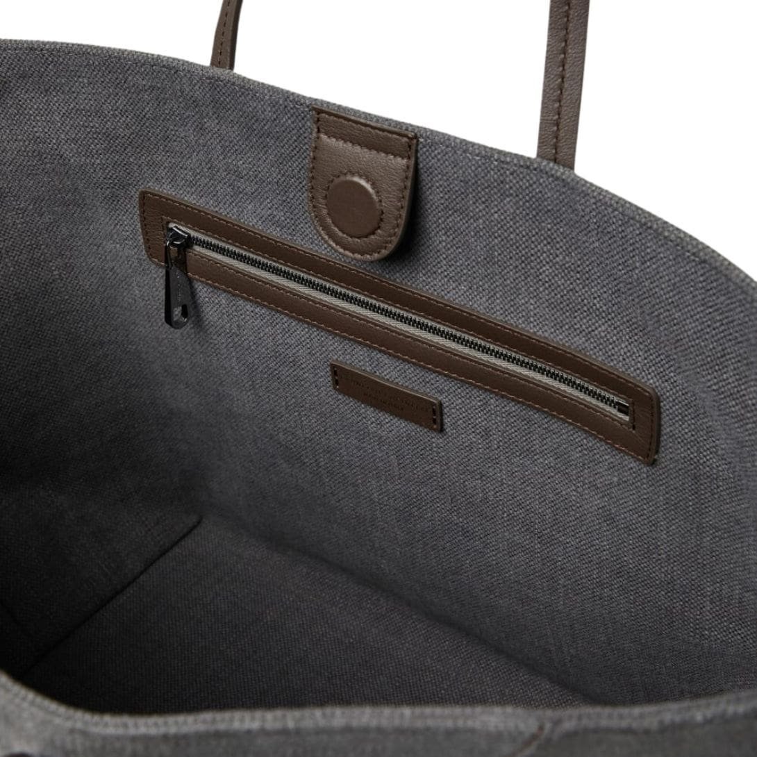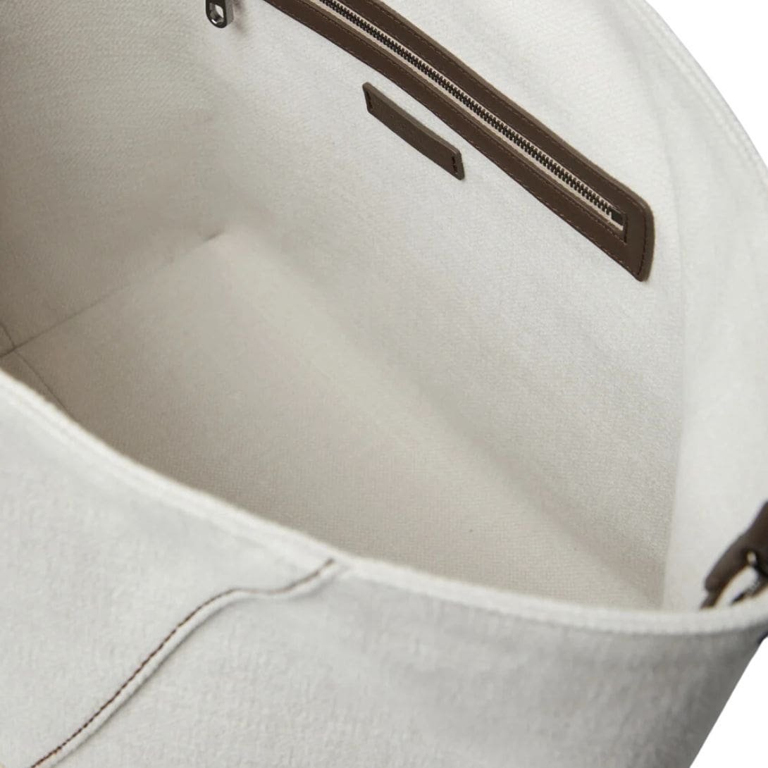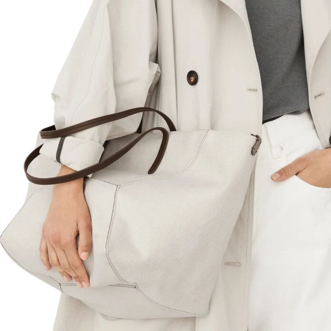 BRUNELLO CUCINELLI COTTON AND LINEN CANVAS SHOPPER BAG WITH MONILI