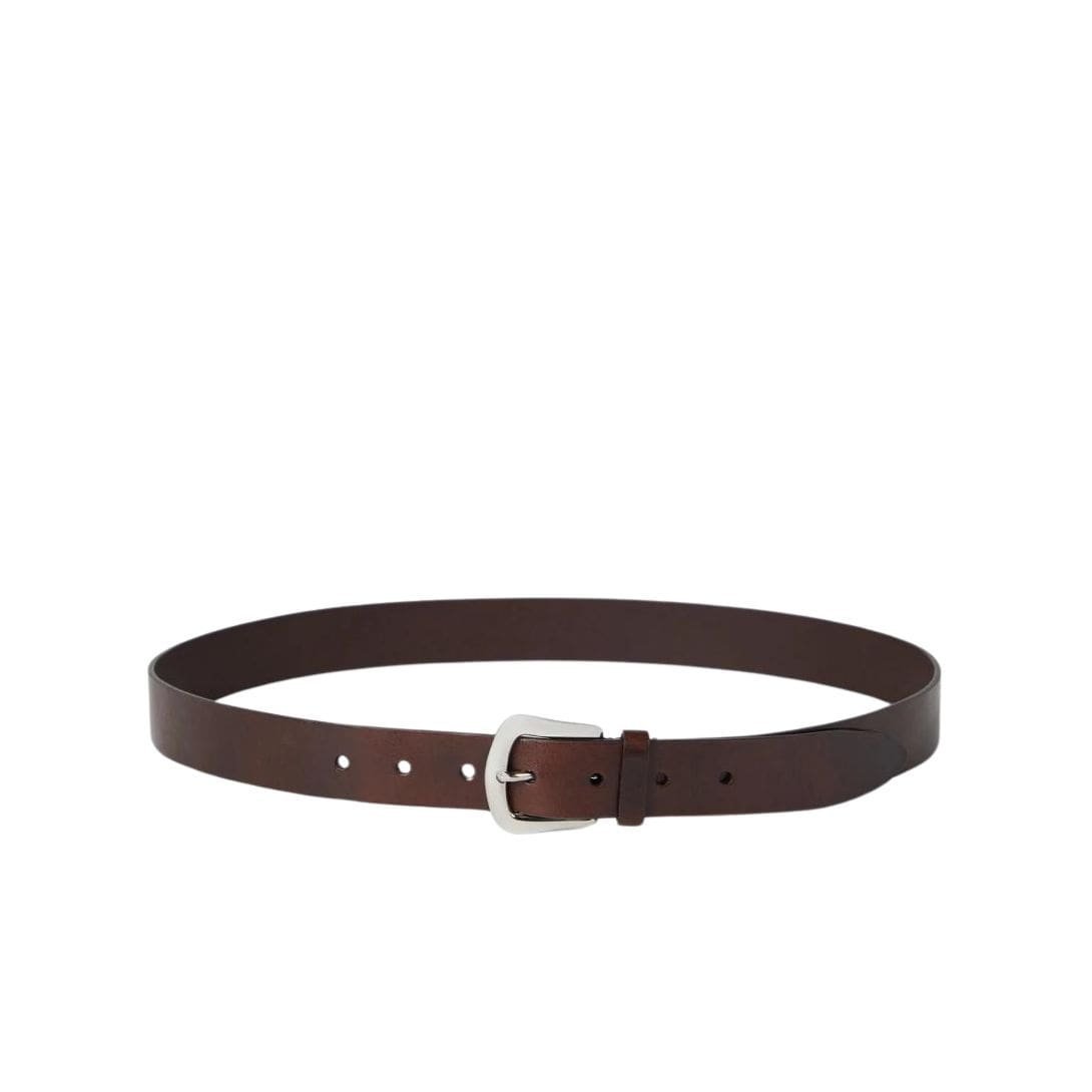 The belt’s color palette is thoughtfully curated, presenting classic hues that include deep browns, rich tans, and sophisticated blacks. Each color option highlights the leather’s natural grain, adding a touch of character and individuality to the accessory. The edge is meticulously burnished, ensuring a smooth, polished appearance that contributes to the belt’s overall elegance.