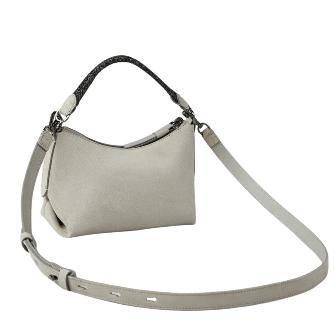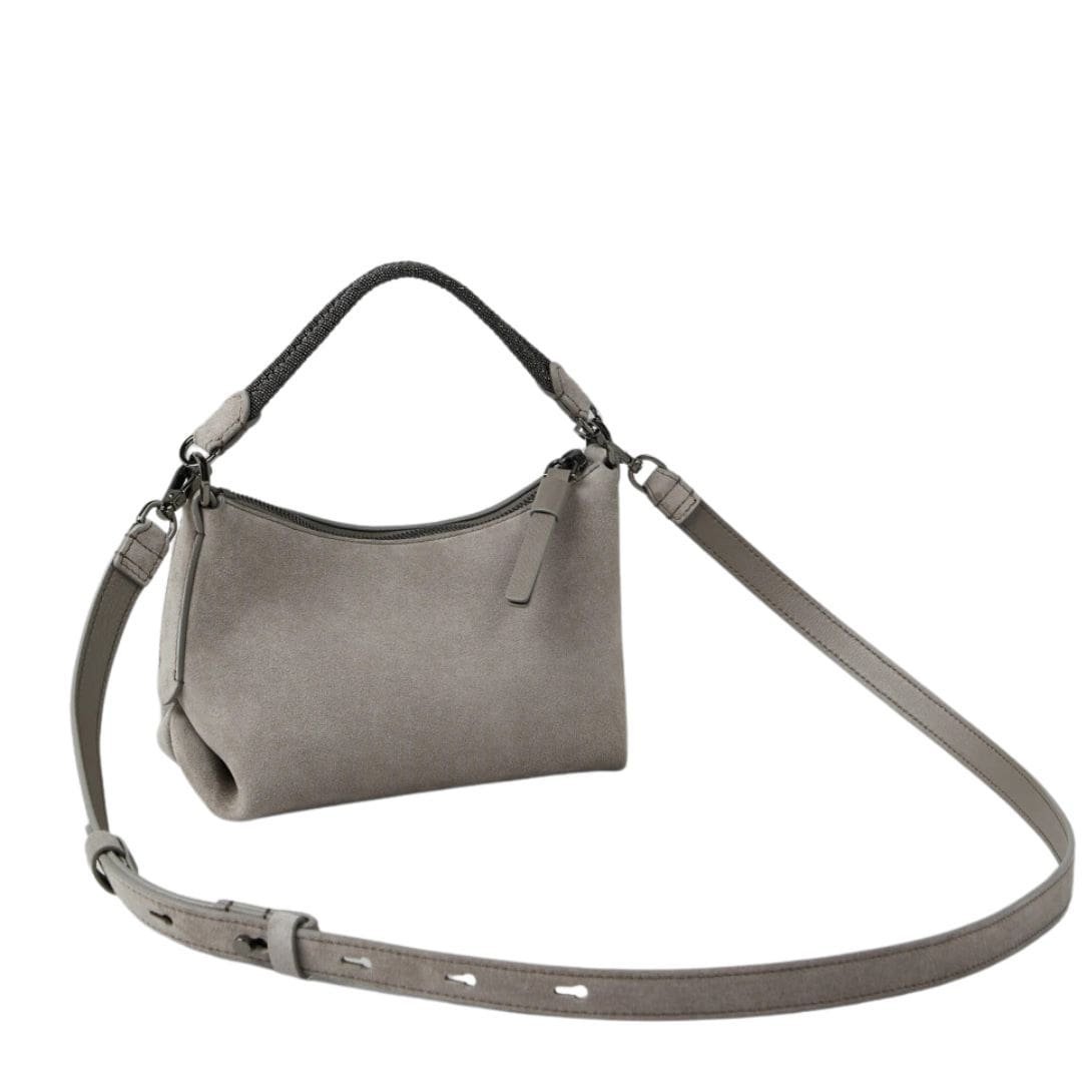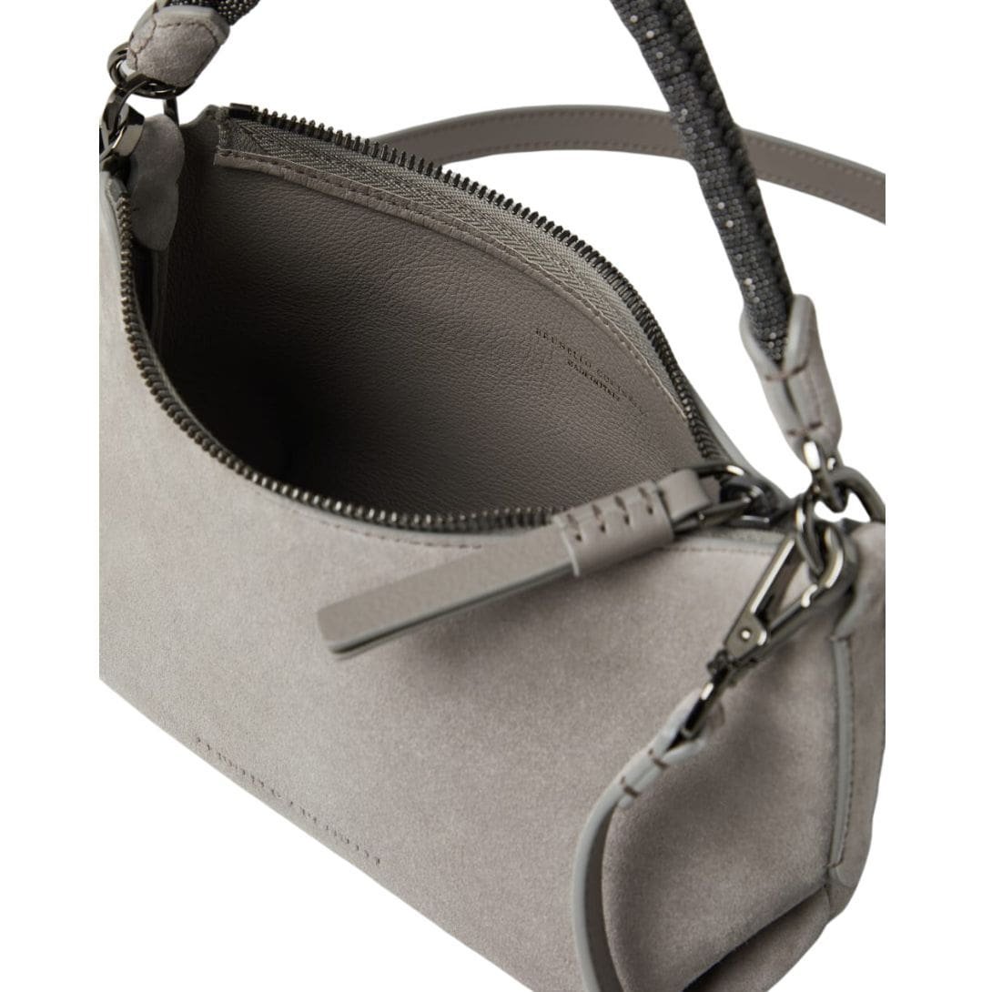 BRUNELLO CUCINELLI SUEDE BAG WITH PRECIOUS BRAIDED HANDLE