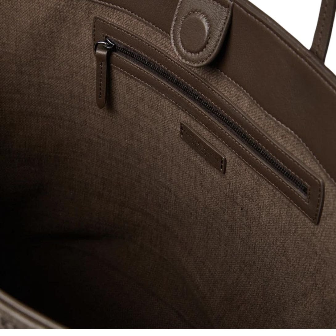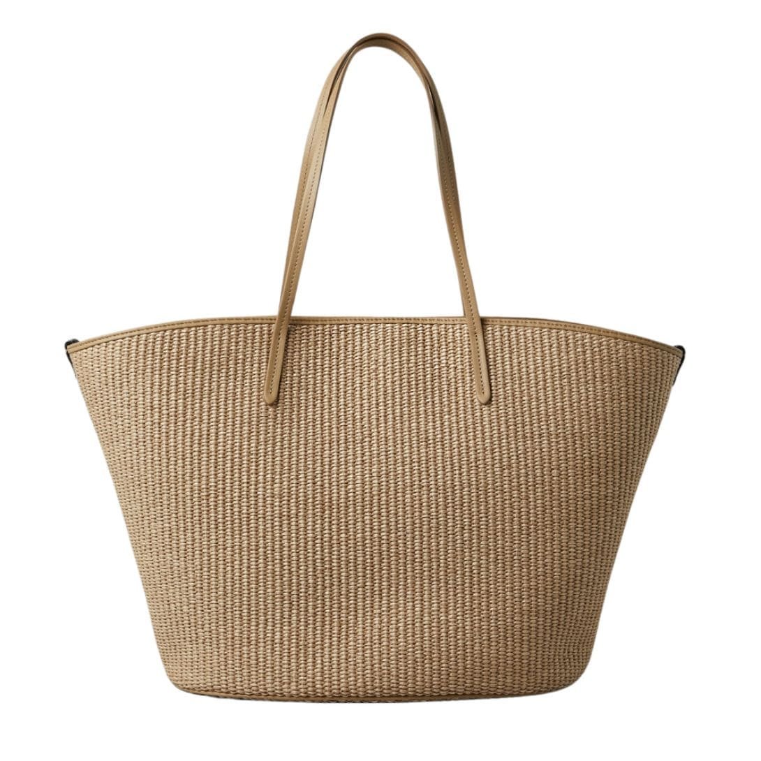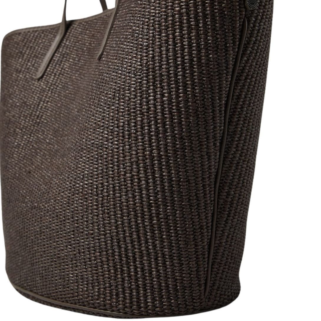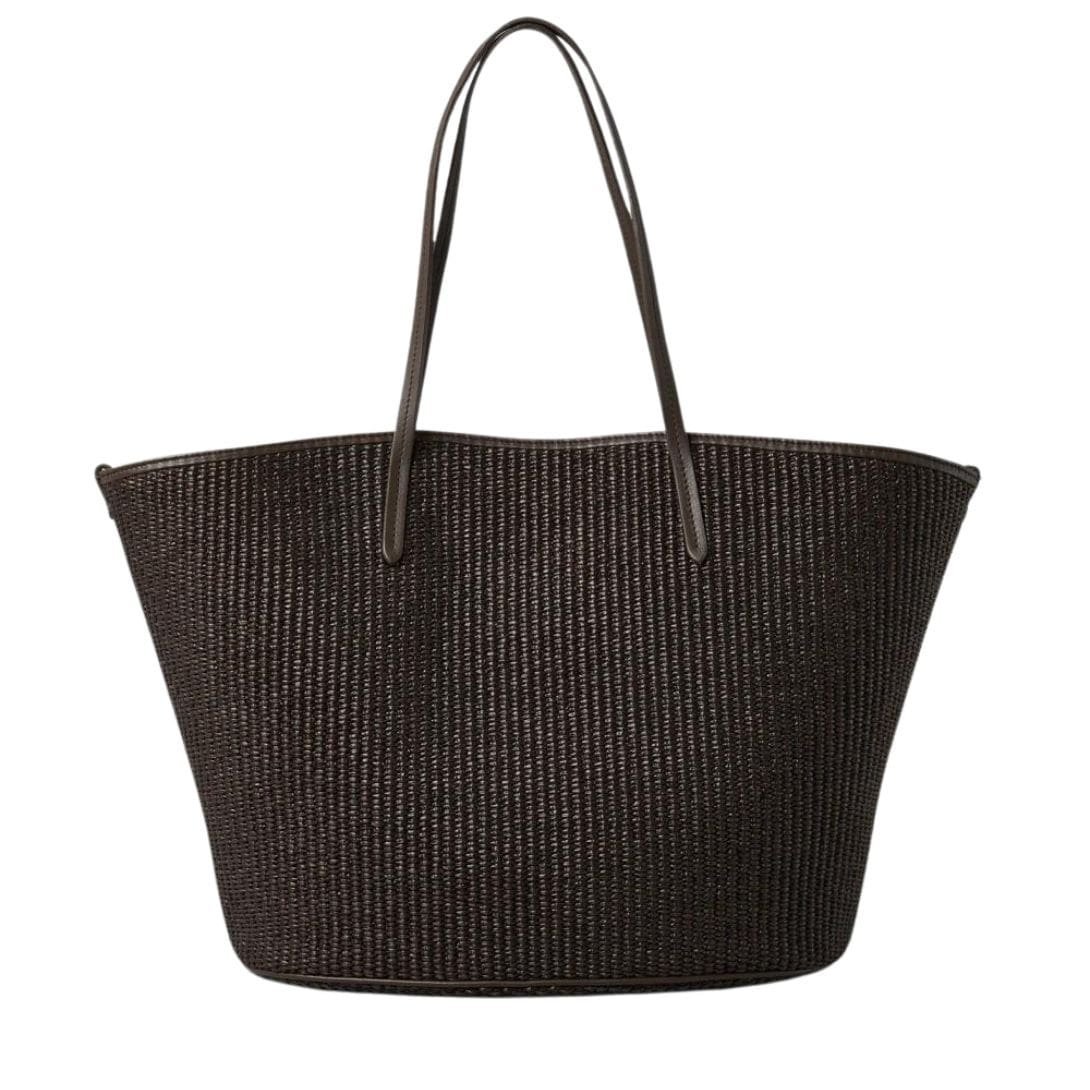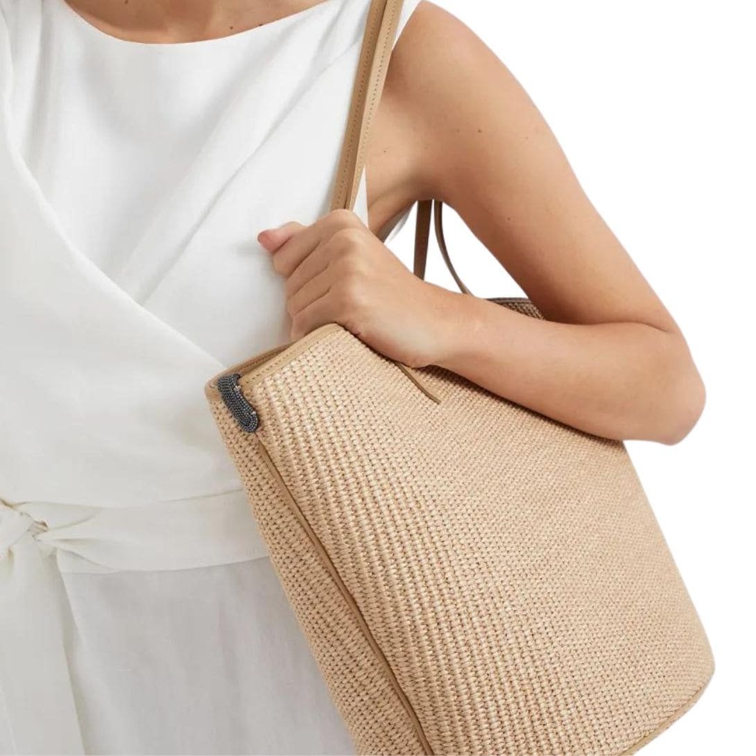- The Brunello Cucinelli Techno Cotton Raffia Shopper Bag with Monili offers a summery allure while updating its essential silhouette.