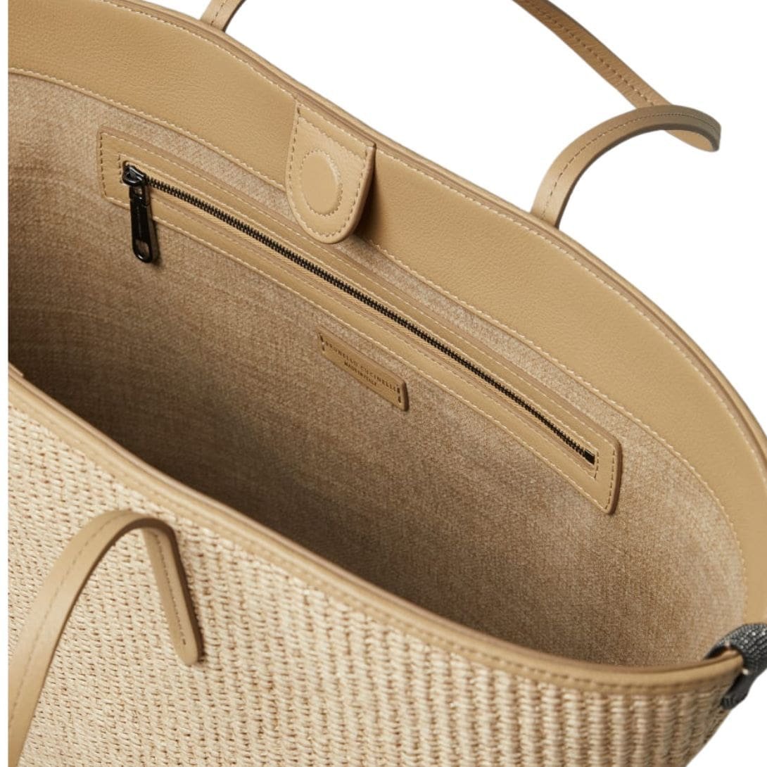 Description of Brunello Cucinelli Techno cotton Raffia Shopper Bag With Monili: