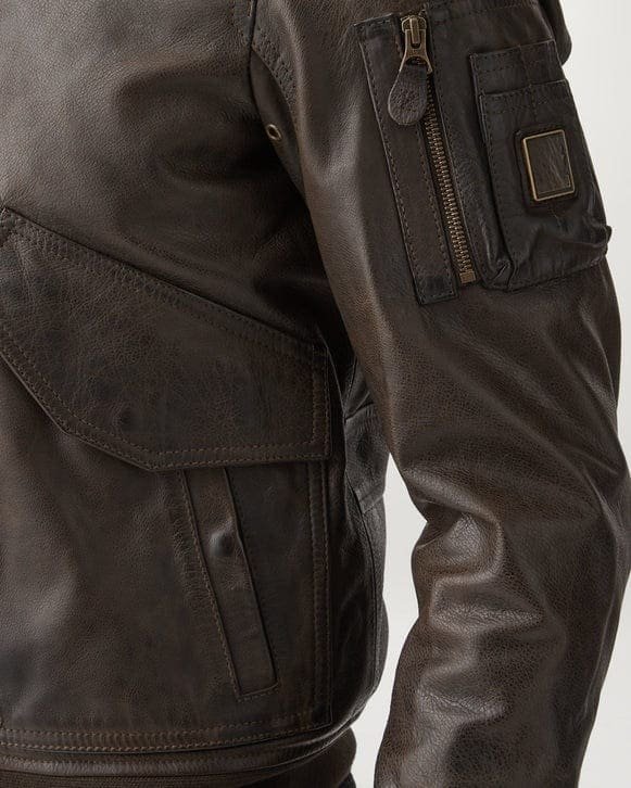 Full-grain Italian calf leather that is hand-waxed and brushed for a durable Heritage flight jacket silhouette