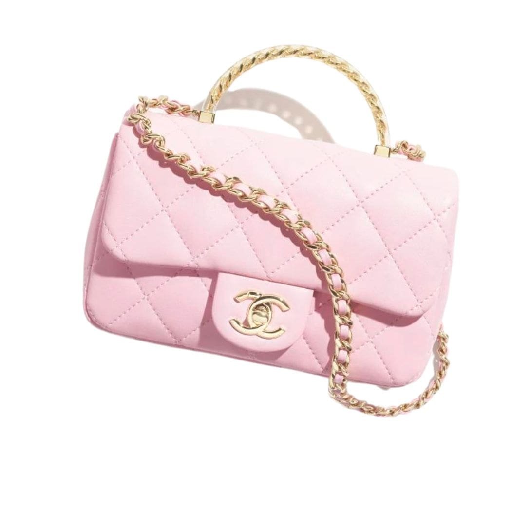 The Chanel Mini Flap Bag with Top Handle epitomizes timeless elegance and sophistication, seamlessly blending classic Chanel design elements with modern functionality. Crafted from luxurious lambskin leather, this compact yet iconic accessory exudes unparalleled craftsmanship and attention to detail.The Chanel Mini Flap Bag with Top Handle is the epitome of timeless elegance and luxury, embodying the essence of Chanel’s iconic design philosophy.