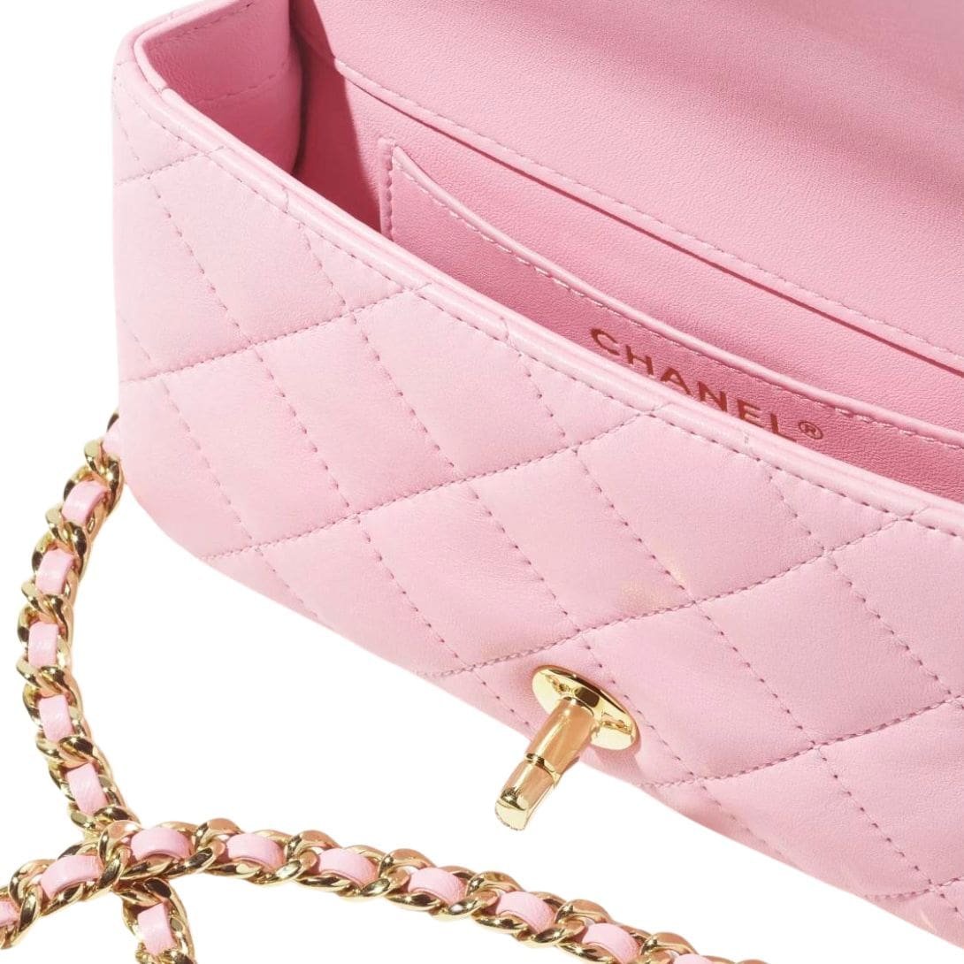 Despite its compact size, the interior of the Chanel Mini Flap Bag is thoughtfully designed to maximize utility without compromising on style. The main compartment is lined with sumptuous leather and features a slip pocket, allowing for seamless organization of essentials such as keys, cards, and lipstick.