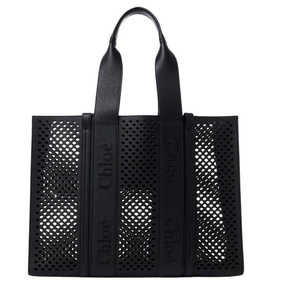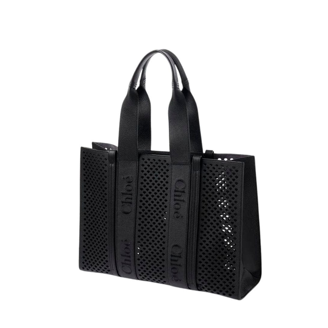 Crafted from luxurious-grained calfskin, the Chloe Large Woody Tote Bag Black. epitomizes the brand’s signature aesthetic with its perforated scallops, a motif deeply rooted in Chloé’s DNA. This spacious day bag boasts an elevated aesthetic, perfect for the modern woman seeking style and functionality in her accessories.