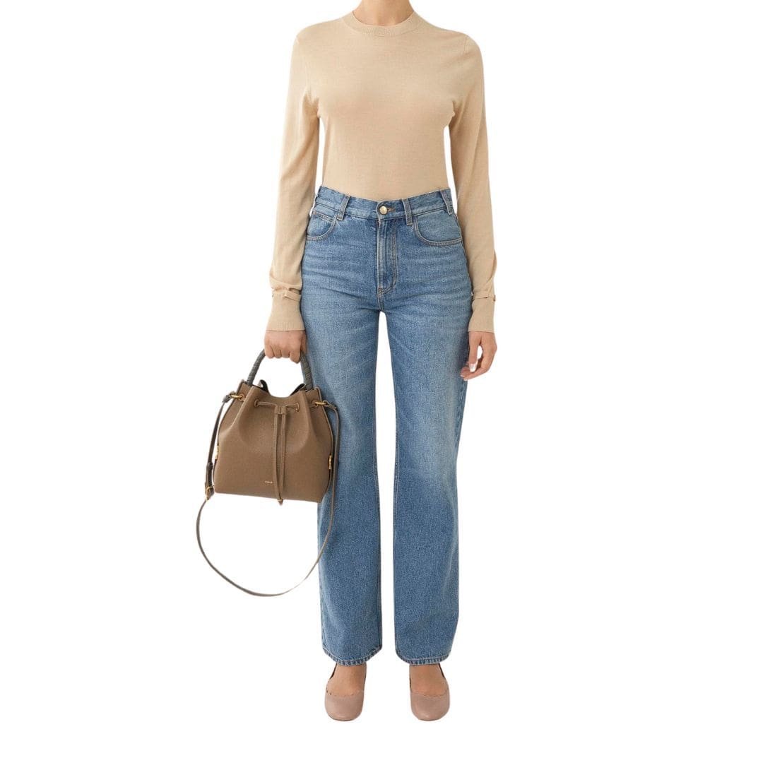 The hand-braided top handle serves as a hallmark feature of the Marcie line, adding an artisanal touch to the bucket bag’s overall aesthetic. Crafted with meticulous attention to detail, this unique element reflects Maison’s dedication to exquisite craftsmanship and timeless elegance. Meanwhile, the subtle embossed Chloé logo discreetly adorns the bag, providing a subtle nod to its prestigious lineage.
