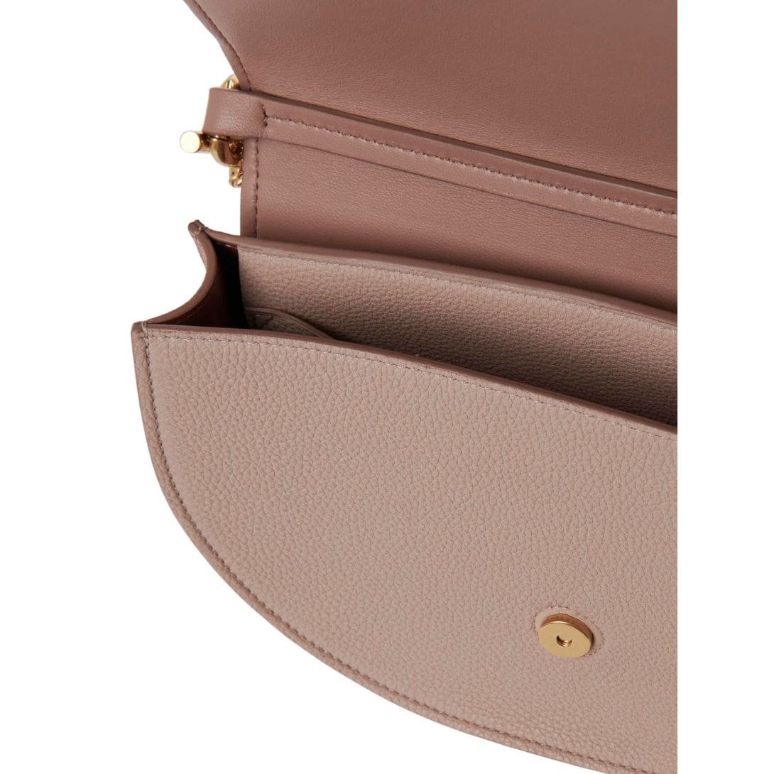 Expanding its renowned Marcie line, the Maison introduces the sophisticated CHLOE Marcie Chain Flap Bag Woodrose, epitomizing elegance and refinement through a luxurious fusion of materials. Crafted from a captivating blend of nappa lambskin, grained calfskin, and suede, this exquisite accessory exudes textural richness and tactile allure. The Maison reimagines its signature hardware, adorning the flap with a Chloé-engraved jewelry signature, infusing the design with an air of exclusivity and sophistication.