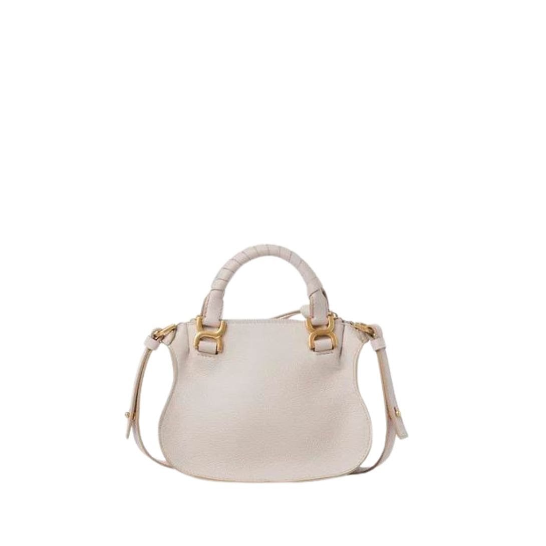 The Chloe Marcie Mini Double Carry Bag Wild Grey. presents a charming rendition of the iconic Marcie handbag, skillfully crafted from luxurious-grained calfskin leather. Its diminutive size belies its impact, offering a playful yet sophisticated accessory for the modern woman.