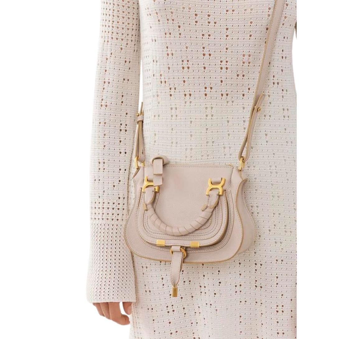 In conclusion, the Chloe Marcie Mini Double Carry Bag is in wild grey. encapsulates the epitome of sophistication, versatility, and craftsmanship. From its meticulous construction to its timeless design elements, it serves as a testament to the Maison’s enduring legacy of luxury and style.