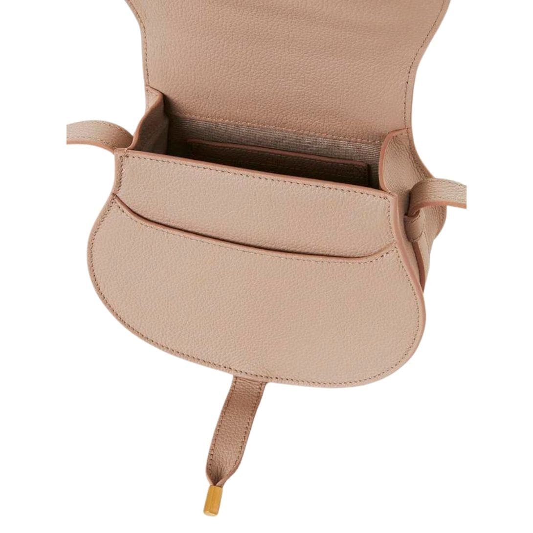 Crafted with meticulous attention to detail, the Marcie Small Saddle Bag features a spacious compartment ideal for organizing your essentials, along with a front slip pocket and internal flat card pocket for added convenience. The adjustable leather strap, adorned with a square buckle, offers versatility for long-shoulder or cross-body wear, ensuring optimal comfort and style for every occasion.