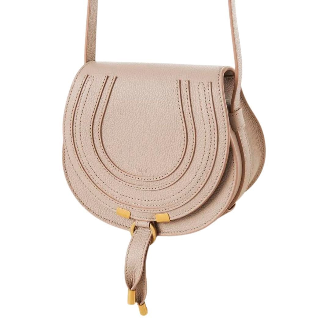 Immerse yourself in the timeless elegance of the Chloe Marcie Small Saddle Bag Floral Grey. by Maison Chloe, meticulously crafted from luxurious-grained calfskin. This exquisite accessory embodies Maison Chloe’s signature blend of masculine and feminine elements, showcased through its harmonious mix of a clean top line and round silhouette.