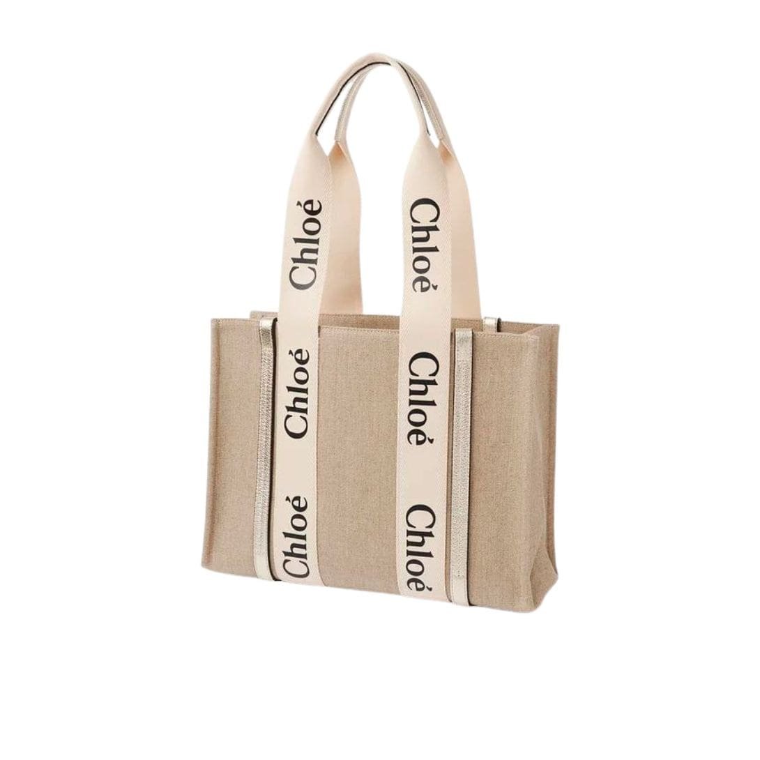 Imbued with sophistication and versatility, the Chloe Medium Woody Tote Bag Light Gold. epitomizes contemporary elegance. Crafted from linen intricately detailed with metallic calfskin, this tote bag seamlessly blends luxurious textures for a striking visual contrast.