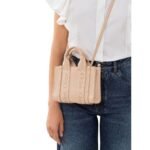 Versatility is paramount in the design of the mini Woody tote, offering multiple carrying options to suit your style. Whether elegantly grasped by the delicately crafted top handle, draped effortlessly over the shoulder, or worn cross-body for added convenience, this bag adapts seamlessly to your dynamic lifestyle.