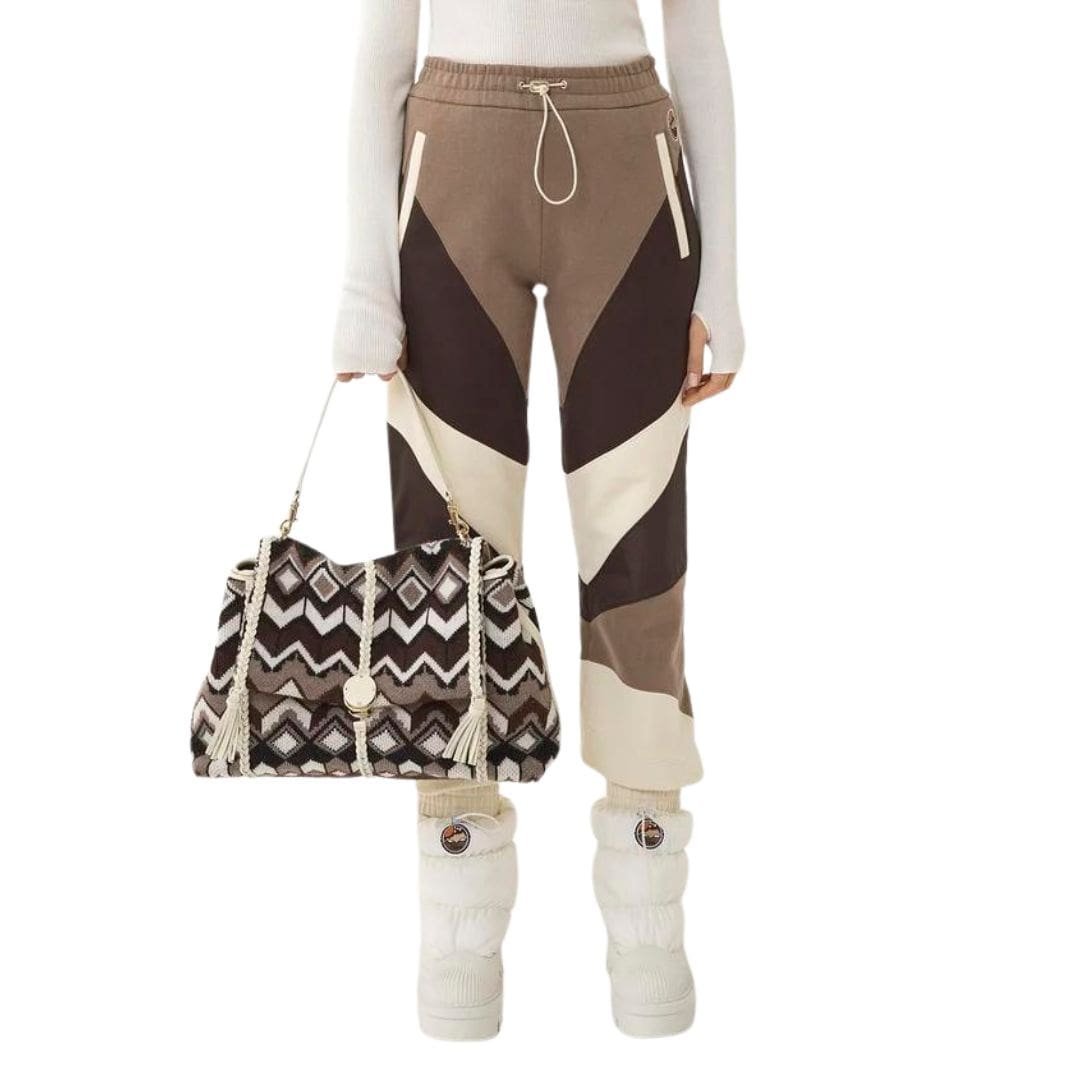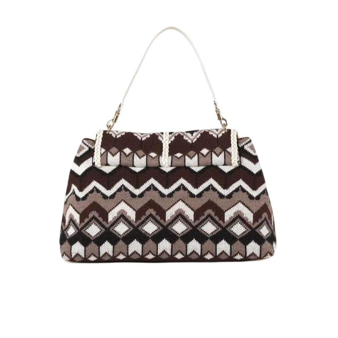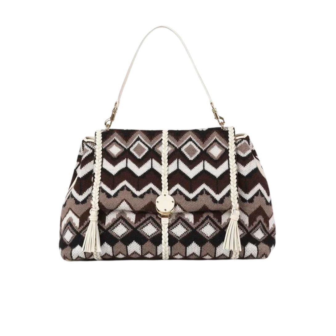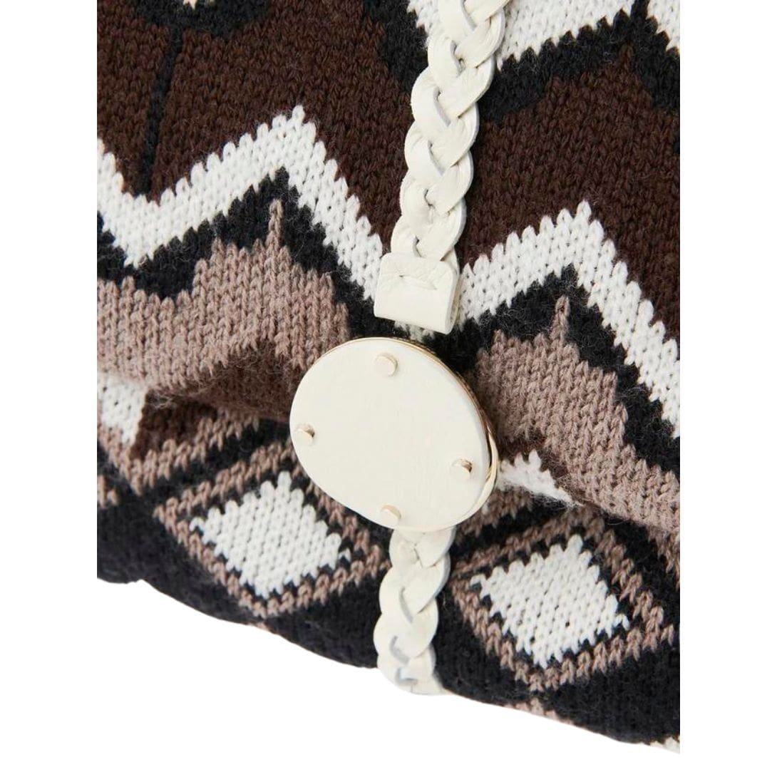 As part of the Chloé Mountain capsule collection,Chloe Penelope Large Soft Shoulder Bag Brown Multicolour. is a charming embodiment of playful sophistication, drawing inspiration from the cosy ambience of warm ski jumpers. Crafted from wool knit with a graphic pattern reminiscent of alpine motifs, this bag exudes a whimsical yet chic attitude, perfect for infusing your winter wardrobe with a touch of mountain-inspired flair.