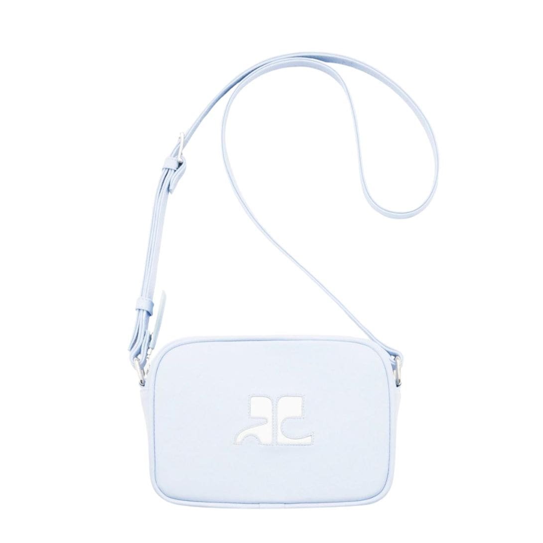 The bag features a sleek, rectangular silhouette reminiscent of a classic camera bag, providing both functionality and a nod to retro chic. Made from high-quality, durable materials, it ensures longevity and resilience, making it a practical choice for everyday use. The exterior is often finished in smooth leather or a glossy, patent-like material, available in a variety of colors that reflect Courrèges’ penchant for bold, eye-catching hues as well as timeless neutrals.