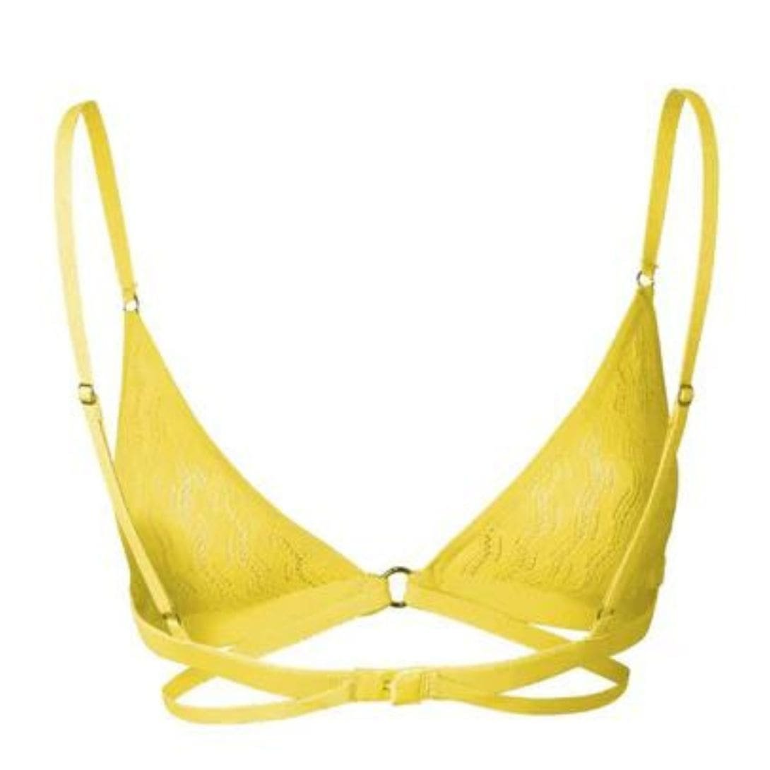 The Dodo Bar or Amanda Bra’ is fashioned from pointelle knit, featuring triangle cups and adjustable spaghetti straps, complete with a back hook-and-eye closure.