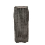 The dodo bar or Assa Skirt’ is skillfully crafted from geometric jacquard knit, featuring a striped elasticated waistband and a stylish side slit.