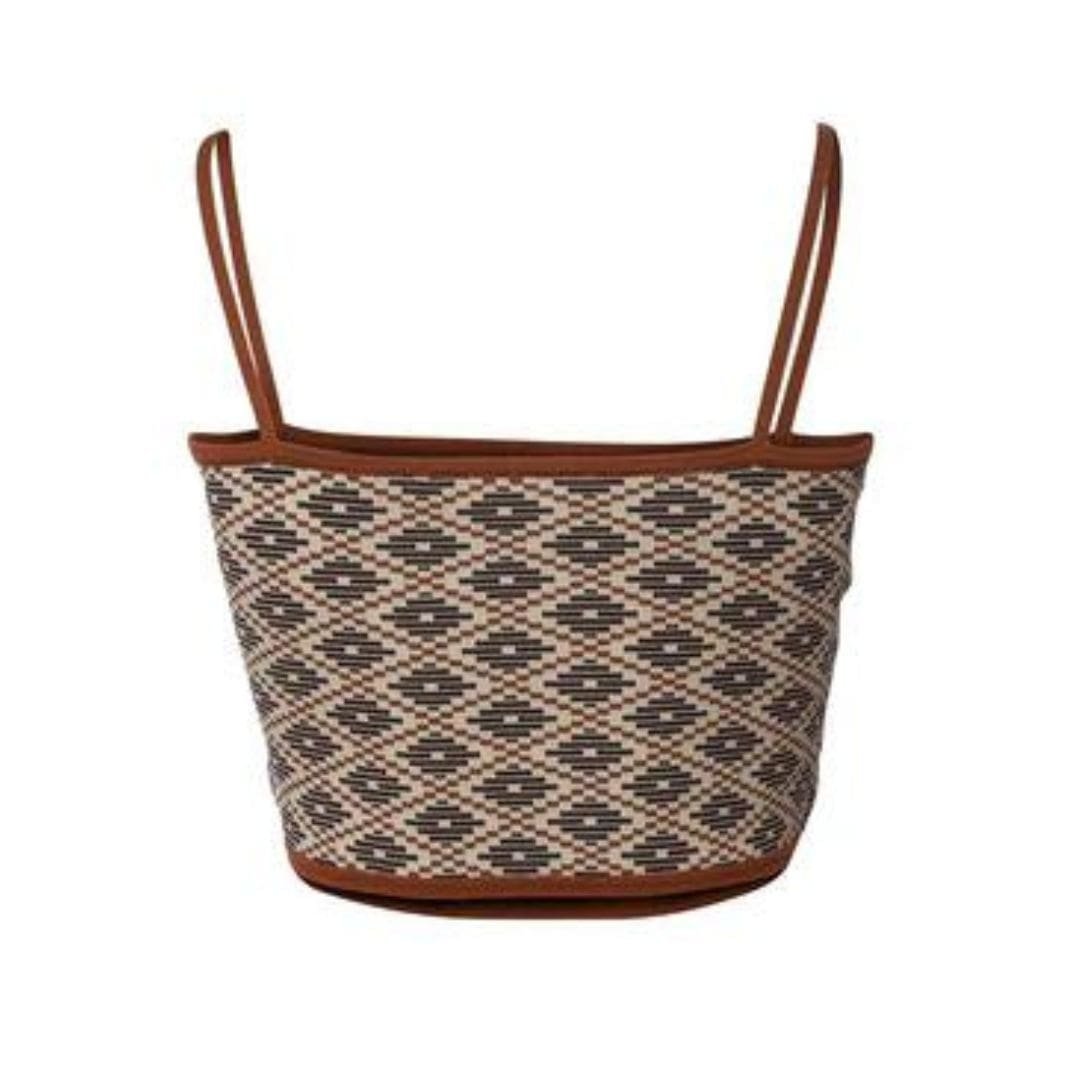 The Dodo Bar OR Eichi Top is crafted from a geometric jacquard knit, featuring slim straps and a cropped hem designed to showcase your collarbones.