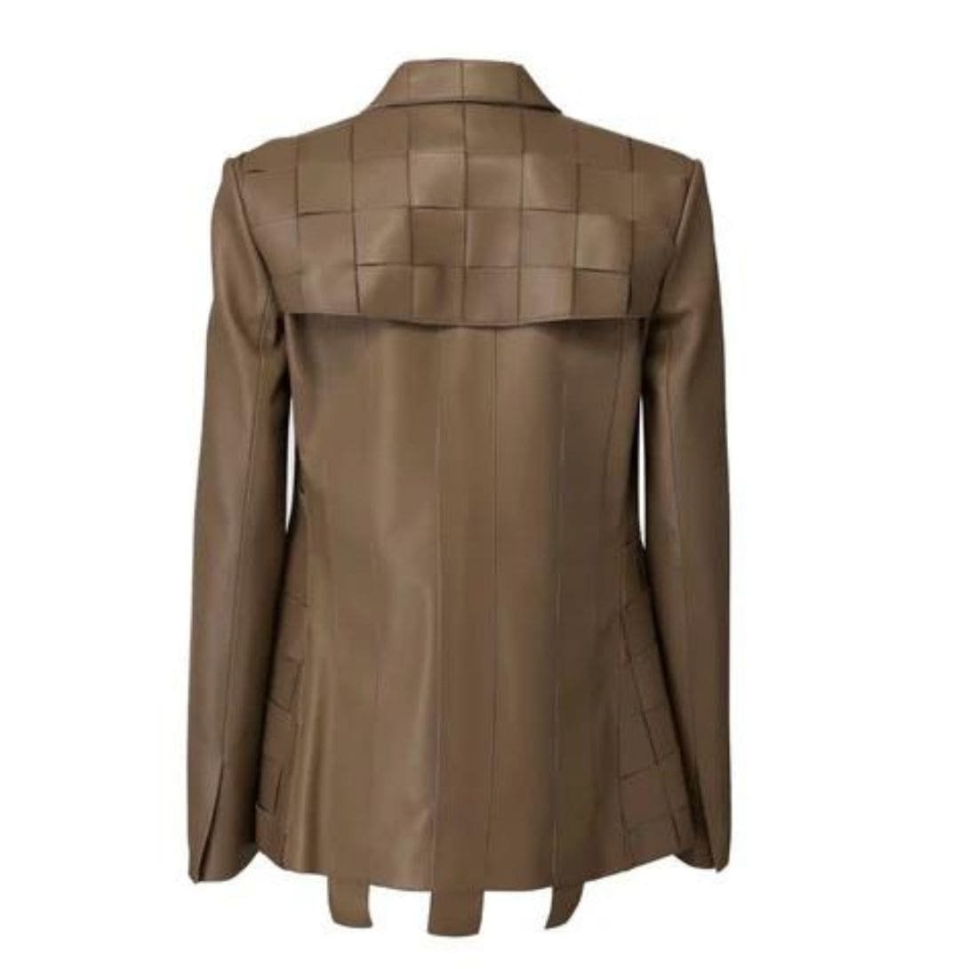 Dodo Bar or Gigi Jacket is constructed from 100% leather, designed with a boxy silhouette, and features peak lapels. It includes long sleeves, a concealed front fastening, a woven bodice and yoke, tasselled panels at the back, and a satin lining.