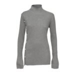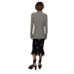 The Dodo Bar or Ozzy Shirt’ is crafted from ribbed knit and features long sleeves, a high neck, and an asymmetric overlap fastening secured by crystal embellished buttons.