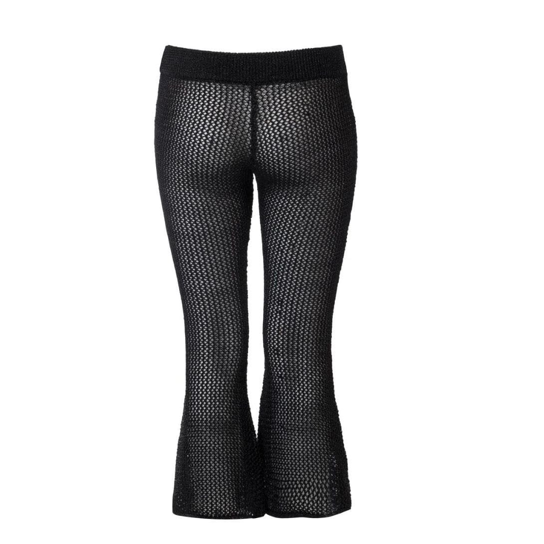 The Dodo Bar OR Patty Pants’ are crafted from open-knit metallic yarn, designed to fit snugly with flared legs.