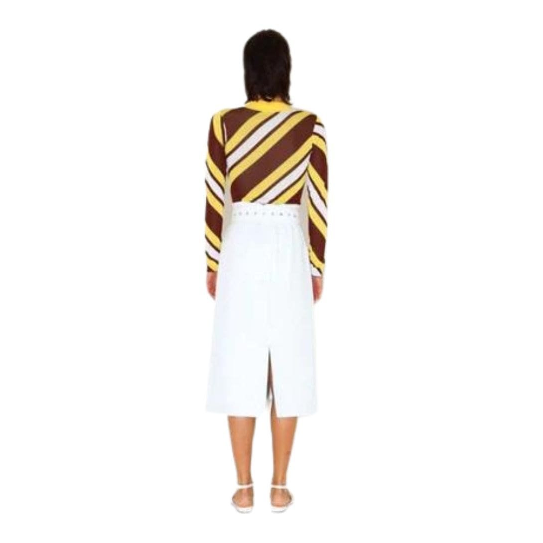 The dodo bar or Summer Bodysuit’ offers a snug fit with a stylish round neckline and a diagonal-striped pattern.