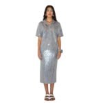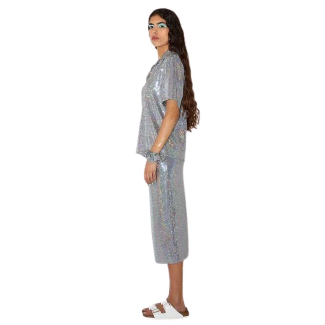 The Dodo Bar OR Sun Shirt’ is crafted from a square mirror-embellished satin jersey, designed for a relaxed fit with a point collar.