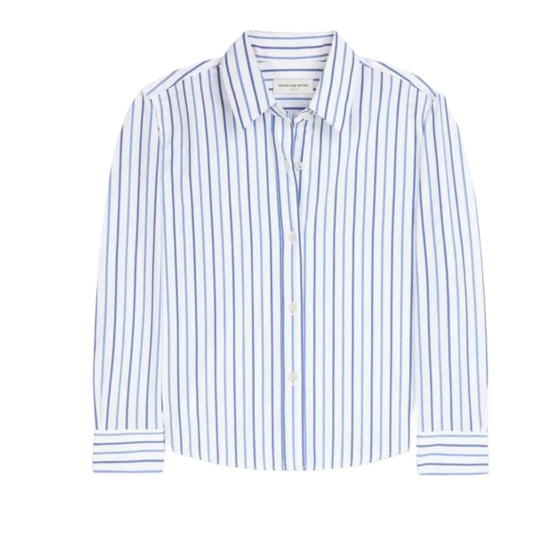 Step into contemporary sophistication with the Dries Van Noten Boxy Mini Shirt Light Blue, expertly tailored from striped cotton. This distinctive piece showcases the Belgian designer’s dedication to blending minimalist design with impeccable craftsmanship.