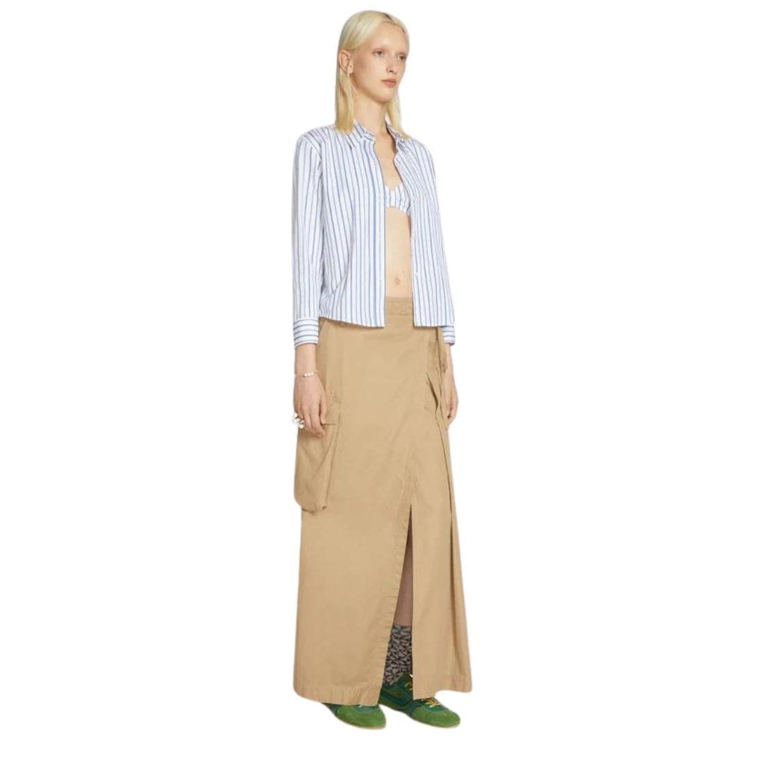 The use of striped cotton fabric not only enhances the shirt’s versatility but also reflects Dries Van Noten’s commitment to using premium materials that offer both comfort and durability. Each seam and stitch is crafted with precision, ensuring a garment that not only looks impeccable but also withstands the test of time.