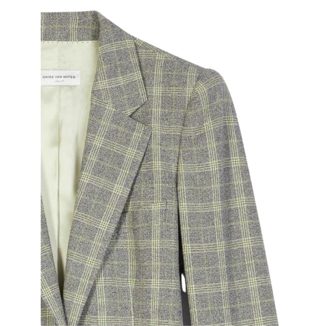 Experience the timeless elegance and luxurious craftsmanship of the Dries Van Noten Checked Fitted Blazer in Dessin A. Elevate your wardrobe to new heights of style and sophistication with this exquisite piece.