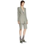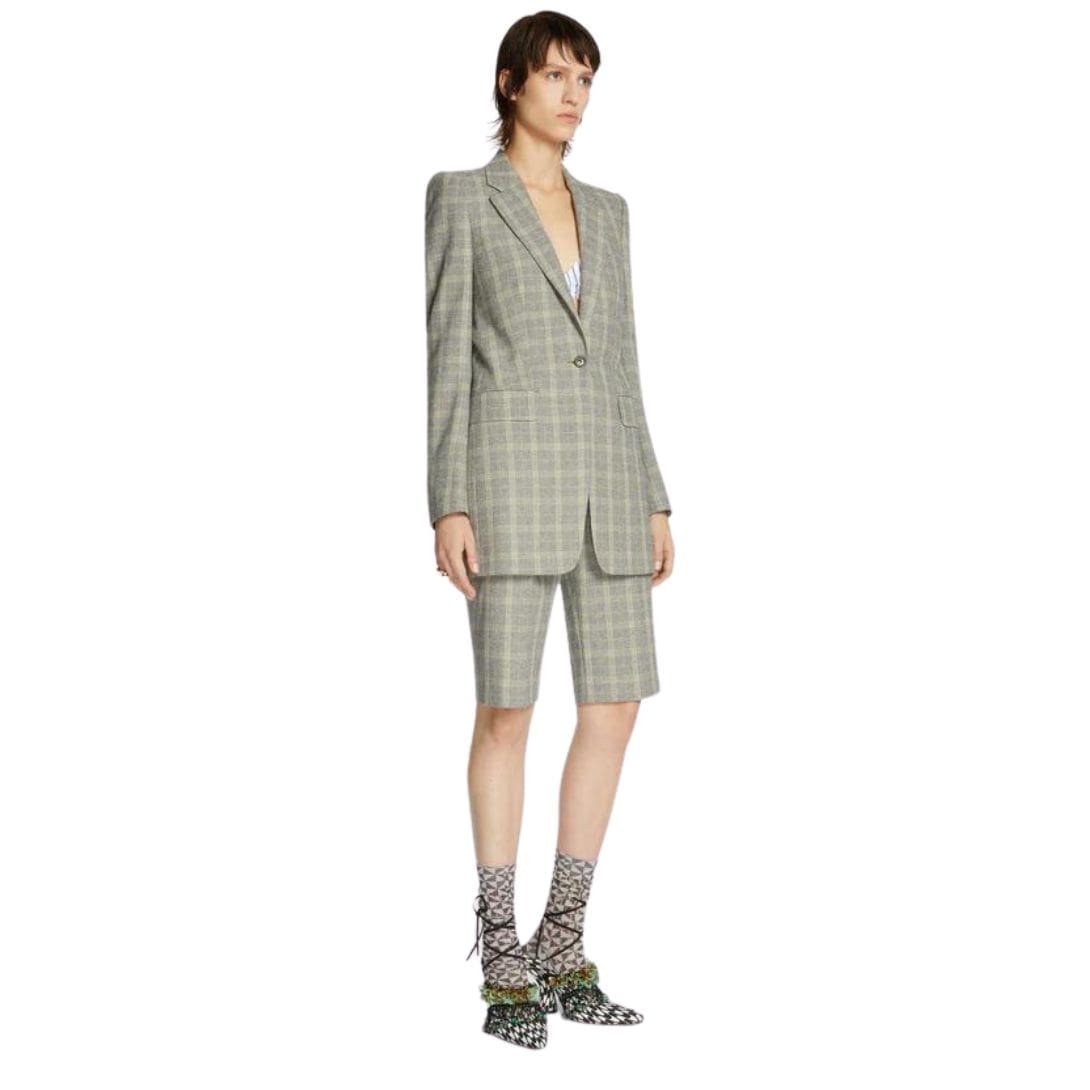 Adorned with a classic Prince of Wales check pattern, this blazer exudes sophistication and charm. Its fitted silhouette flatters the figure, while the pagoda shoulders add a touch of structure and elevate its overall aesthetic, ensuring a look that is both elegant and contemporary.