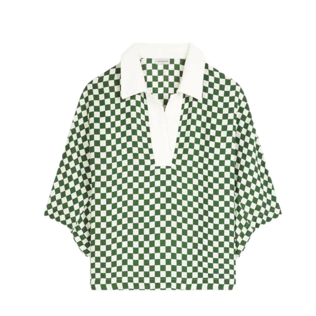 DRIES VAN NOTEN CHECKED POLO TOP GREEN