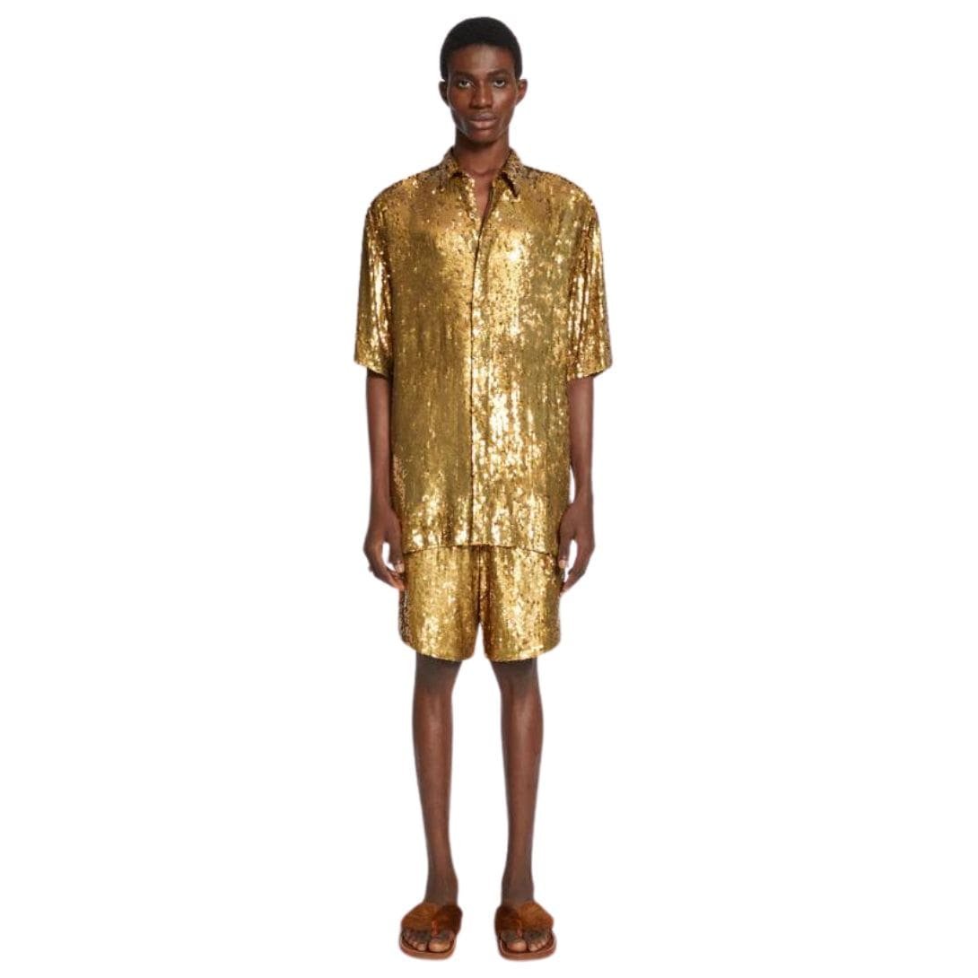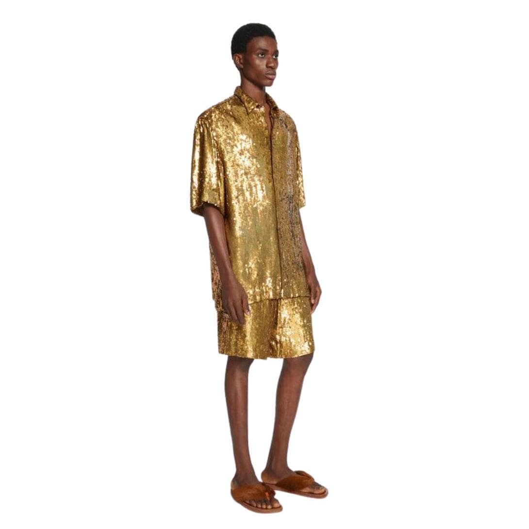 Unveil a touch of understated luxury with the Dries Van Noten Embellished Shirt, make a statement with this eye-catching shirt that features intricate embellishments. (Describe the embellishments in more detail if available, e.g., “featuring delicate floral embroidery” or “adorned with shimmering sequins”). Crafted from luxurious materials (replace with specific fabric information when available), this shirt offers both comfort and a touch of the extraordinary.