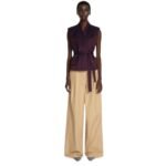 Practicality meets style with the inclusion of front flap pockets, providing convenient storage options for essentials while maintaining the vest’s sleek and streamlined appearance. Additionally, the belted waist offers the opportunity to cinch in the silhouette, accentuating the waistline and adding a feminine touch to the overall look.