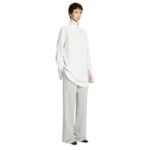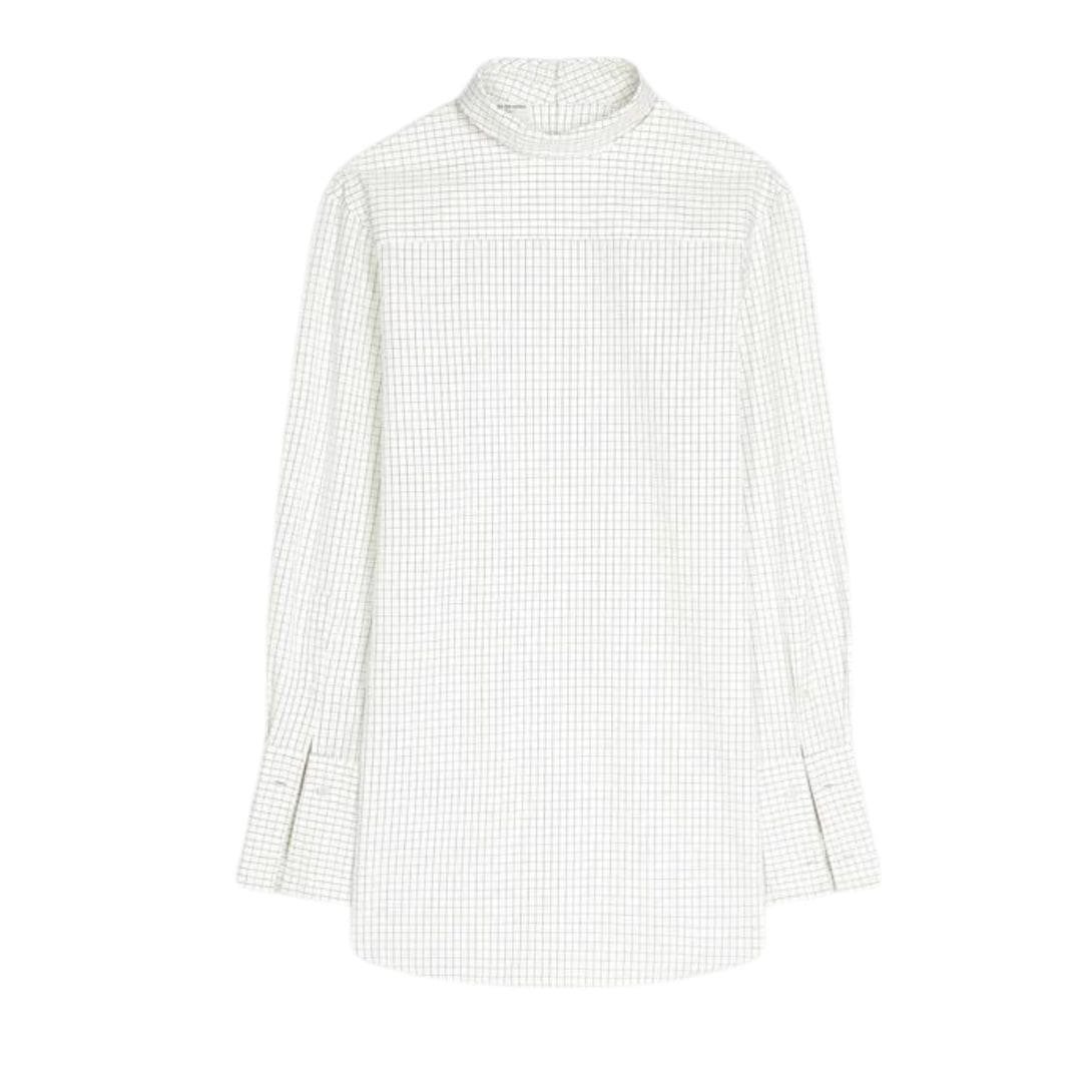The Dries Van Noten Turtleneck Shirt Off White in cotton poplin, featuring a high collar and long cuffs, exemplifies a perfect balance of casual comfort and understated elegance. Known for its meticulous attention to detail and innovative design, Dries Van Noten has created a garment that combines timeless sophistication with contemporary flair.